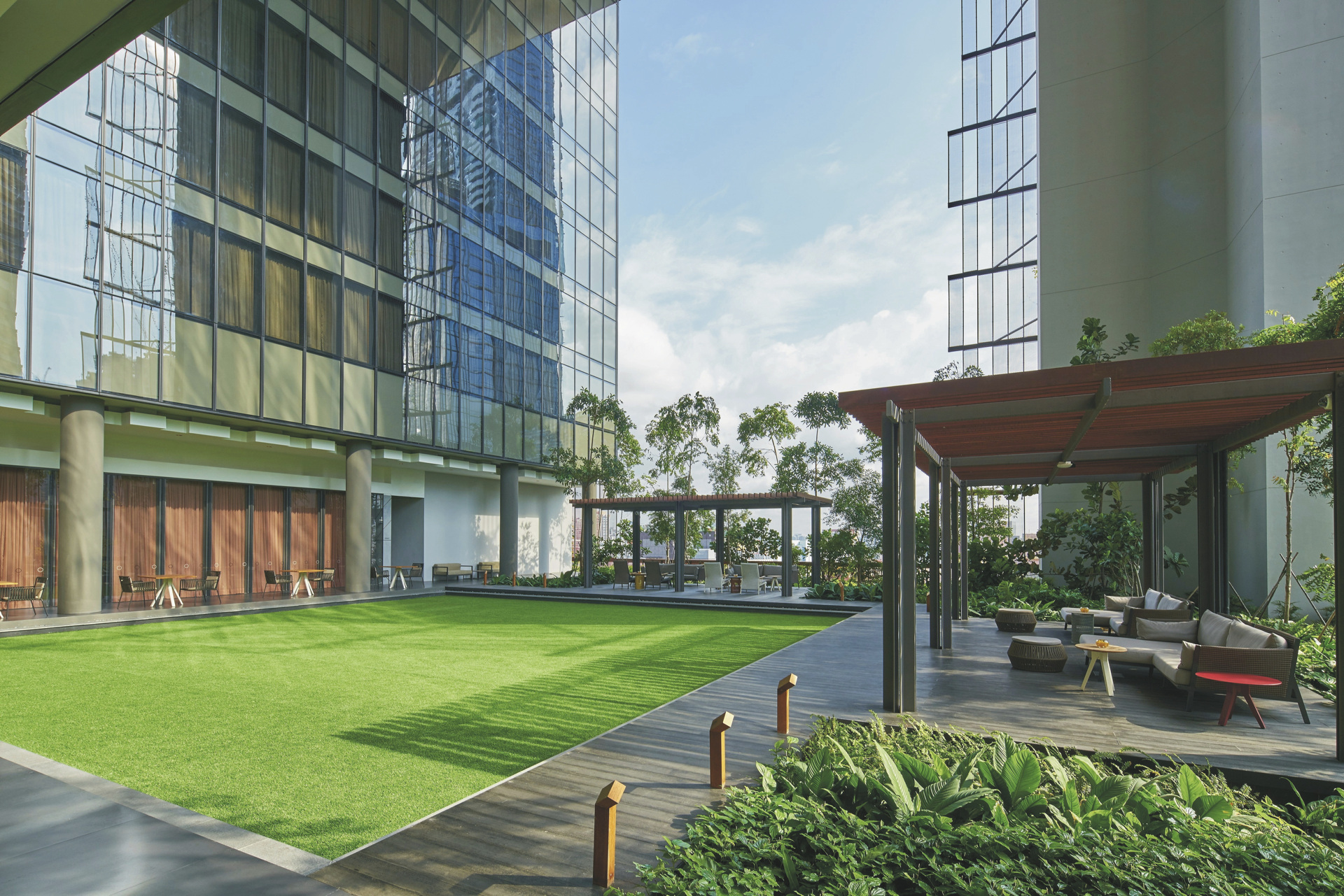 Das Hotel beeindruckt als 27-stöckiger, begrünter Turm. Für das leibliche Wohl sorgen das Bistro The Marmalade Pantry, die Gin-Bar CIN CIN und das italienische OSO Ristorante. Club-Gästen steht zudem eine exklusive Lounge zur Verfügung. Zur Erholung dienen zwei Pools auf der Dachterrasse in der 27. Etage und ein 24-Stunden-Fitnesscenter. Club-Gästen ist ein weiterer Infinity-Pool auf der 21. Etage vorbehalten. Die begrünte Sky Terrace in der 12. Etage bietet eine zusätzliche Ruhezone. WLAN ist im gesamten Hotel kostenfrei.