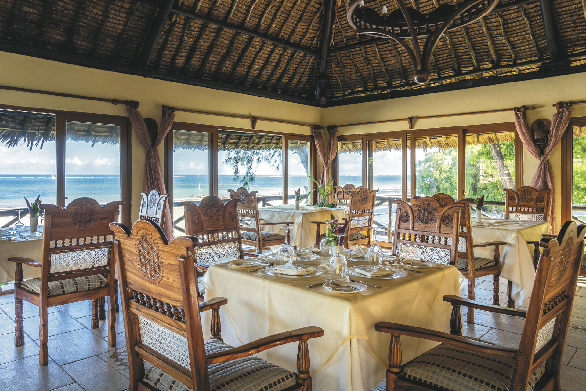 - 12. Tag: Diani Beach (4x F/4x M/4x A).Lassen Sie die Erlebnisse Ihrer wunderbaren Safari am endlosen Puderzuckerstrand ausklingen. Auf einer 32 ha großen Koralleninsel wurde ein exotisches Resort errichtet, das keine Wünsche offen lässt. Schattige Oasen bieten die üppige einheimische Vegetation und die Kokospalmen. Wählen Sie aus drei Pools mit Blick auf den Ozean, Massagen und Behandlungen im Afya Bora Spa und einer Vielzahl an Restaurants und Bars. Zu den Vergnügungen zählen Bogenschießen, Tennis, Darts, Tischtennis, Shuffleboard, Beachvolleyball, Aerobic, Wassergymnastik und abendliche Shows. Verschiedene Tagesausflüge, Schnorcheln, Tauchen, Surfen, Fischen, Golf und Segeln werden optional angeboten.