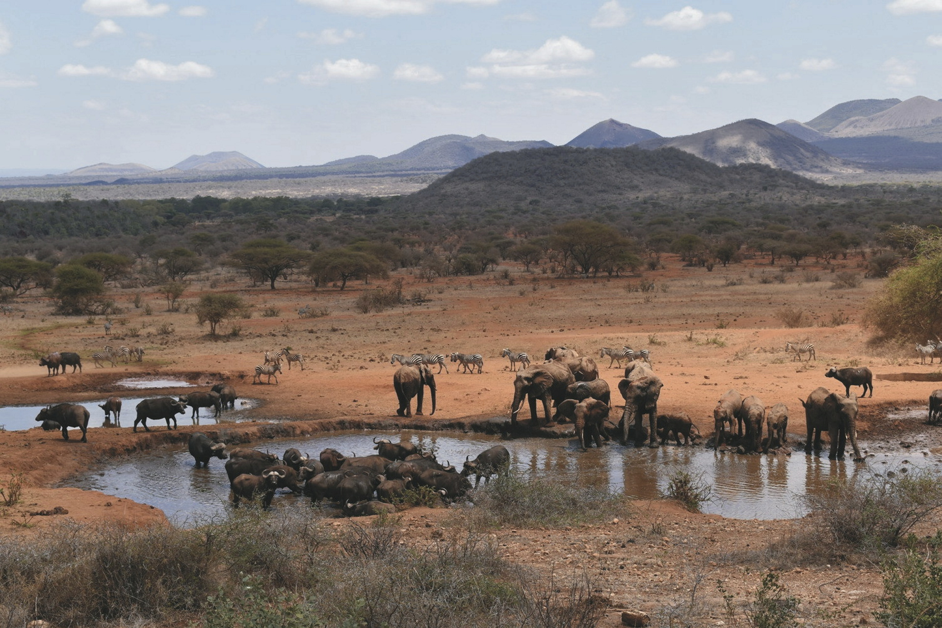 Amboseli Nationalpark - Tsavo West Nationalpark (F/M/A).Nach einem zeitigen Frühstück starten Sie in Richtung Tsavo West Nationalpark. Ihre Fahrt geht über den spektakulären Shetani Lava Fluss zum Nationalpark, der zusammen mit dem Tsavo East den größten Nationalpark Kenias bildet. Nachmittags Pirschfahrt inklusive eines Besuchs der Mzima Springs, einer Quelle, aus der pro Stunde ca. 20 Millionen Liter Wasser aus dem Boden sprudeln. Ein verglaster Unterstand, der in den See gebaut wurde bietet beeindruckende Einblicke in die vielfältige Unterwasserwelt.