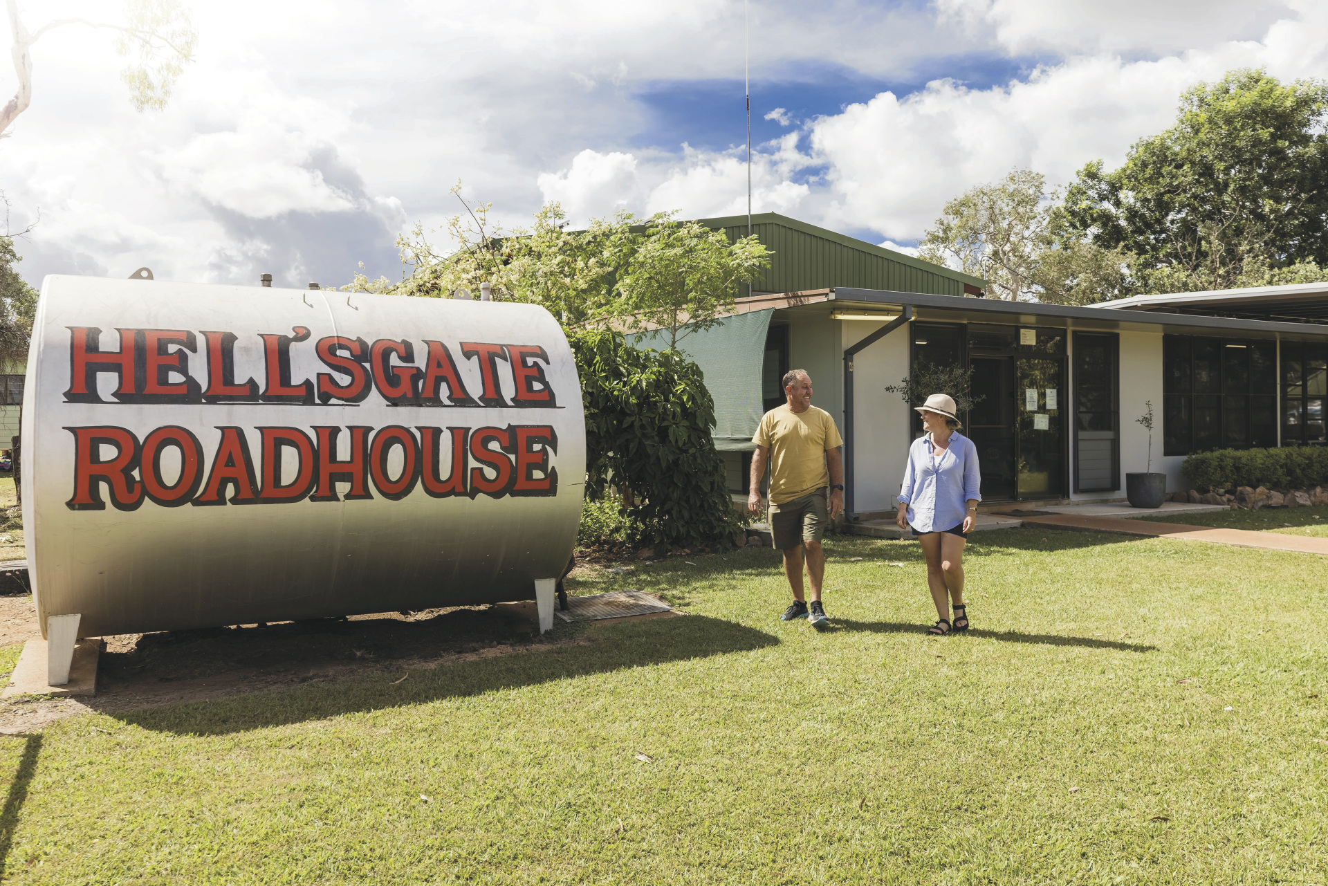 Hells Gate - Boroloola (ca. 320 km).Von Hells Gate aus geht ca. 300 km über nicht asphaltierte Straße und durch beeindruckende Savannenlandschaft in eine der abgelegensten Städte Australiens. Borroloola liegt am Ufer des McArthur River im Golf von Carpentaria, gilt als Tor zur Golfregion und ist bekannt für ihre ausgezeichneten Angelmöglichkeiten. Das Waralungka Arts Centre mit seiner lokalen Aboriginal-Kunst ist an Wochentagen für Besucher geöffnet. Bei einem längeren Aufenthalt bietet sich der Besuch des ca. 34 km nordöstlich von Borroloola liegenden Barranyi National Park auf North Island an. Die Insel gehört den Yanyuwa Aboriginal People und kann per Boot erreicht werden. Lange Sandstrände, kleine Buchten und Sandsteinklippen zählen zu den Hauptattraktionen.