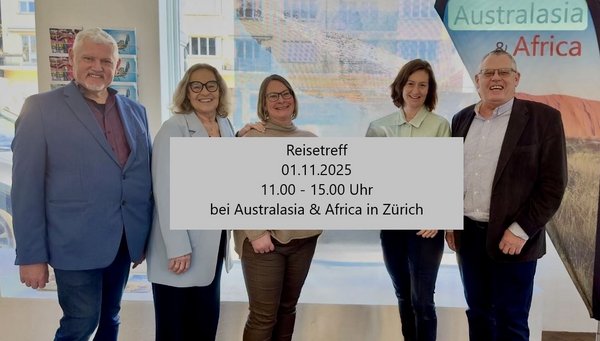 Seit 2025 gemeinsam stärker! Australasia & Africa Reisen hat sich mit dem Schwesterunternehmen Move Reisen zusammengeschlossen. Seit April beratet das Team von Move Reisen seine Kunden an der Schaffhauserstrasse. Wir freuen uns, Reisen weltweit anbieten zu dürfen. Ob Badeferien in Europa oder Mietwagenrundreise durch die USA - unser erfahrenes Beratungsteam kreiiert fantastische Ferienerlebnisse.