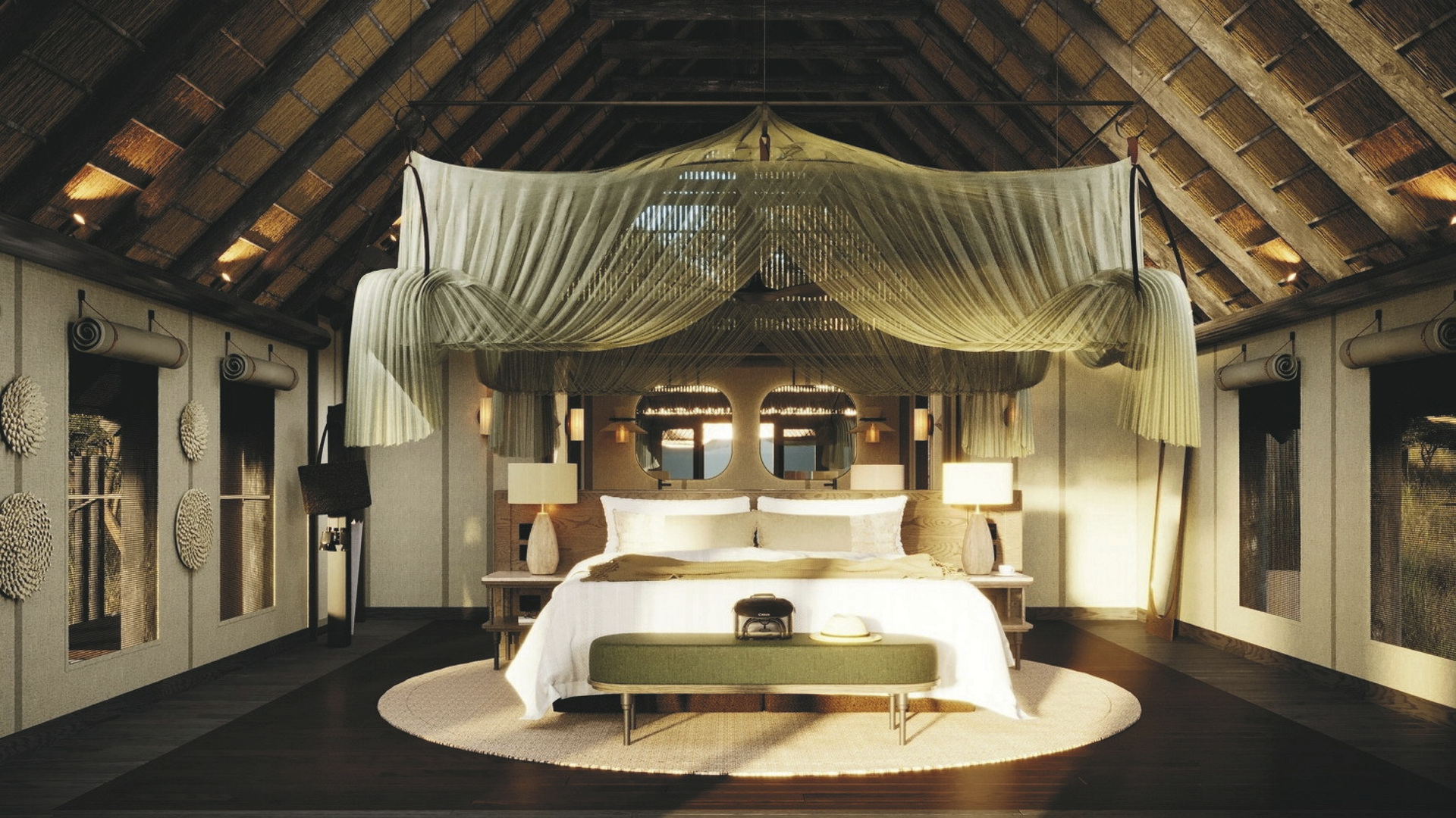 Die 15 Luxuszelte verbinden modernes Design mit afrikanischen Stilelementen: helle, großzügige Räume, traditionelle Reetdächer, dunkle Holzböden und stilvolle Details wie Marmortische und Moskitonetze über den Betten schaffen eine elegante, naturnahe Atmosphäre. Jedes Zelt verfügt über ein eigenes Badezimmer mit Doppelwaschbecken sowie Innen- und Außendusche. Das großzügige Familienzimmer besteht aus zwei separaten Schlafzimmern und zwei Badezimmern. Alle Zelte sind entlang des Khwai Flussufers verteilt und bieten von der privaten Terrasse aus einen freien Blick auf die umliegende Wildnis – ein idealer Ort für Tierbeobachtungen direkt vom Zimmer aus.