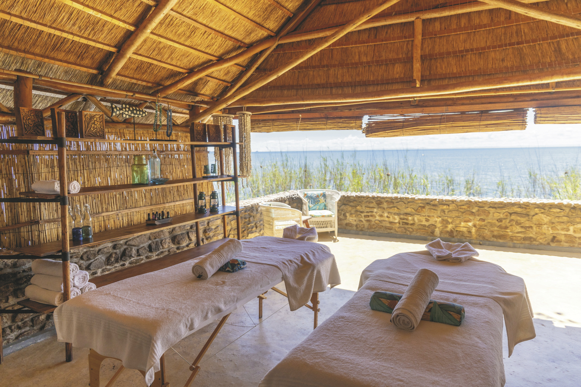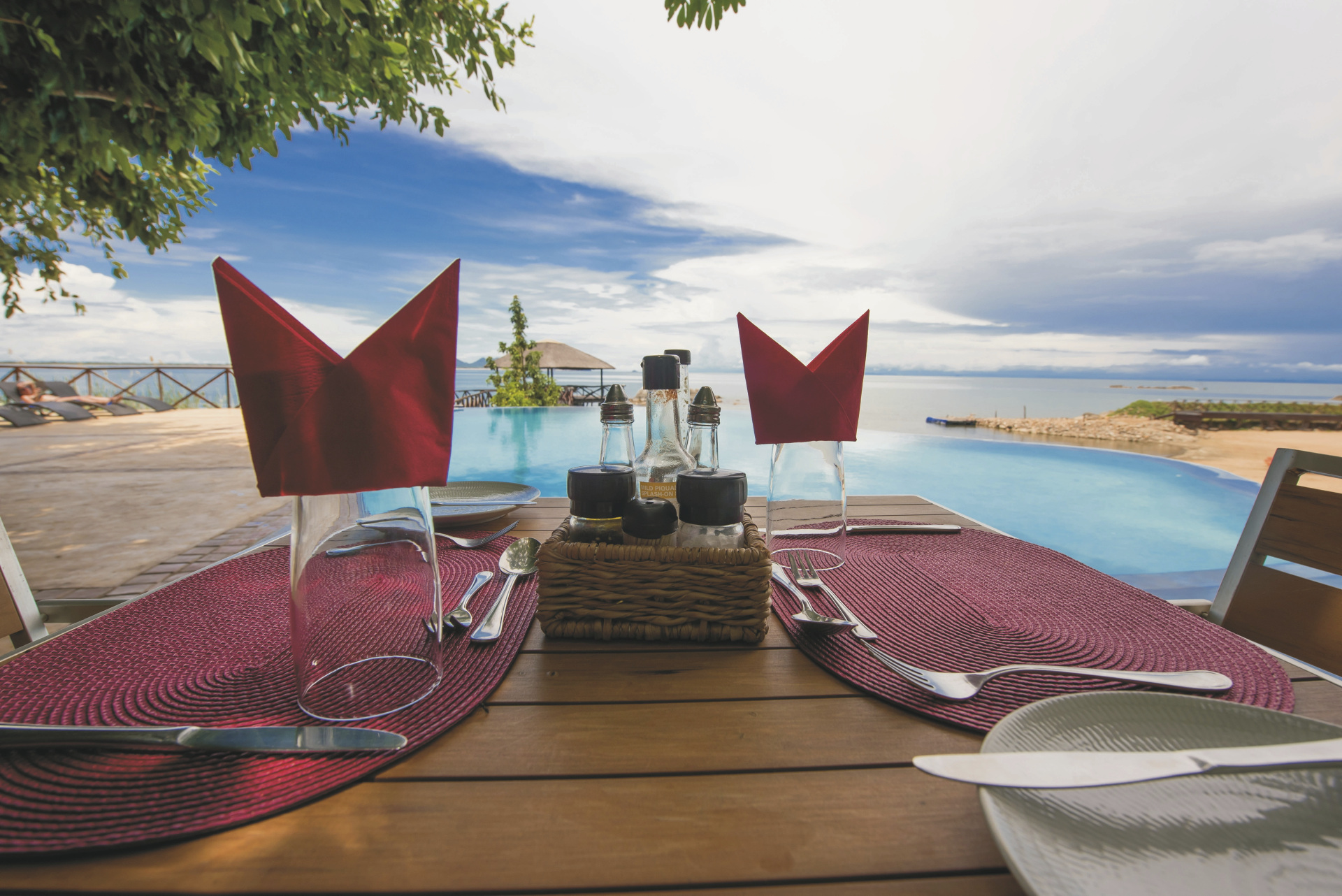 Die hübsche Lodge im Safaristil ist die einzige Unterkunft auf der kleinen Insel und bietet eine entspannte Atmosphäre. Im zentralen Bereich befinden sich gemütliche Sitzecken, das Restaurant, ein Spielezimmer und kostenloses WLAN. Näher am Wasser, mit traumhafter Aussicht, liegen der Pool, umgeben von einer Sonnenterrasse und die Poolbar. Besonders, von der Lage, sind auch die Sunset- Lounge und die Sunset-Terrasse, die nur über einen Steg zu erreichen ist. Im Spa können Sie sich von erfahrenen Kräften verwöhnen lassen. Eingeschlossene Aktivitäten: Kajaken, Schnorcheln, Wandern, Vogelbeobachtungen. Optional: Tauchen, Wasserski fahren, Bootstouren.