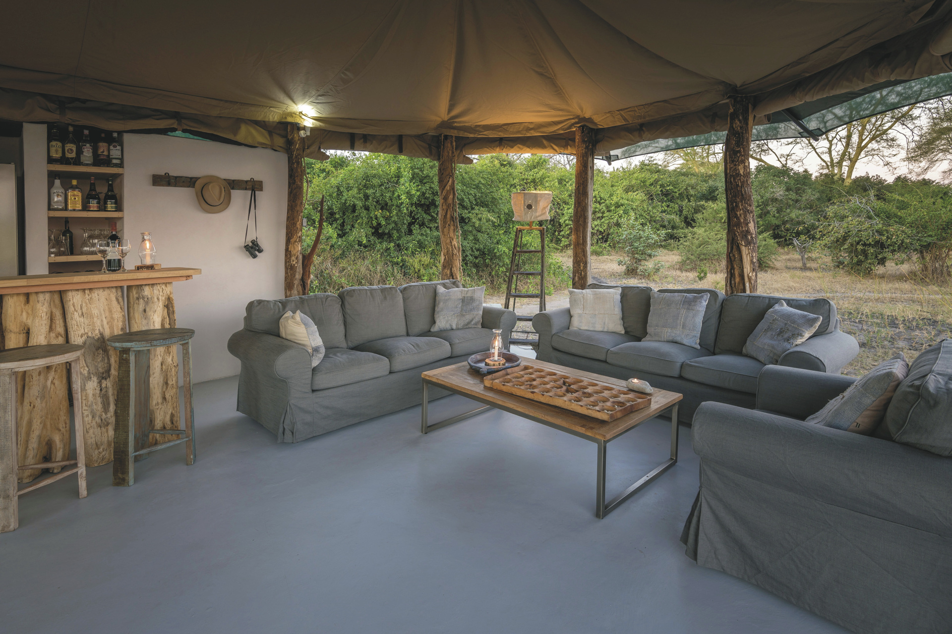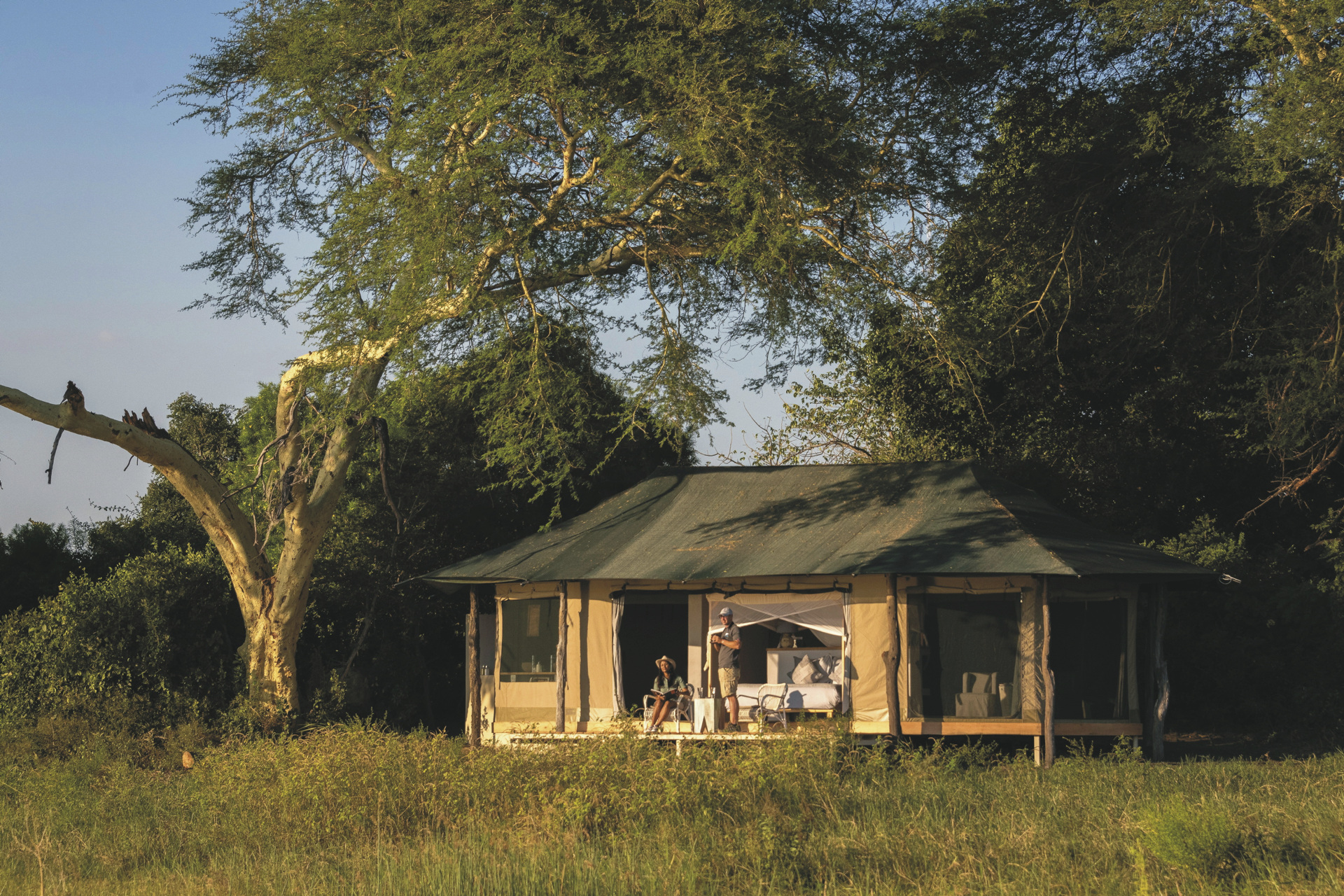 Das nicht eingezäunte Camp ist wunderschön zwischen Baobas und Fieberbäumen eingebettet, der Blick wird immer auf den vorbeiziehenden Fluss gelenkt. Häufig kommt das Wild ganz nah. Im zentralen Bereich gibt es zwei offene Zelte. Eines fungiert als Speisezimmer, das andere, gemütlich mit Sofas und Sesseln eingerichtet, steht als Bar- und Loungezelt zur Verfügung. Am Abend trifft man sich rund um das Lagerfeuer zum gemütlichen Plausch und zur Sternenbeobachtung. Zwischen den Safari-Aktivitäten kann man vom kleinen Pool das Wild am Fluss beobachten. Das Camp wird über Solarenergie und einen Notfallgenerator betrieben. Eingeschlossene Aktivitäten: Pirsch- und Bootsfahrten, geführte Buschwanderungen.