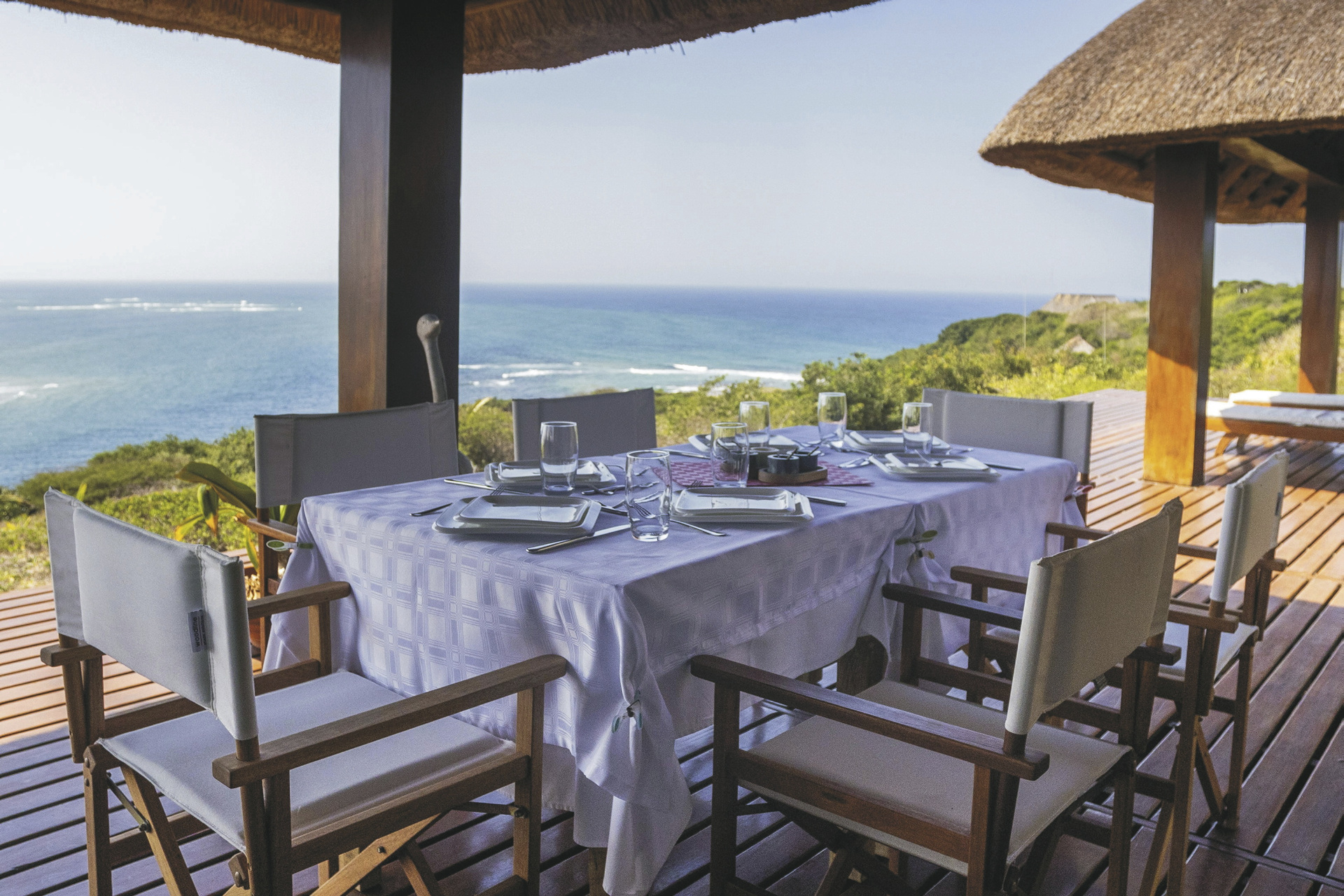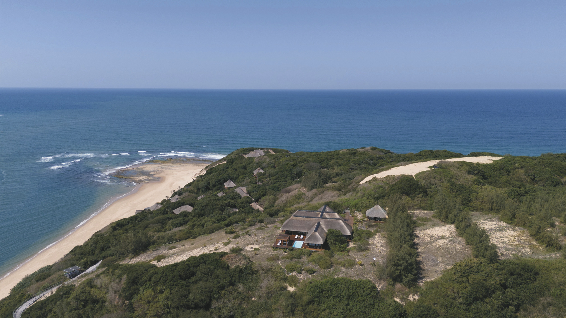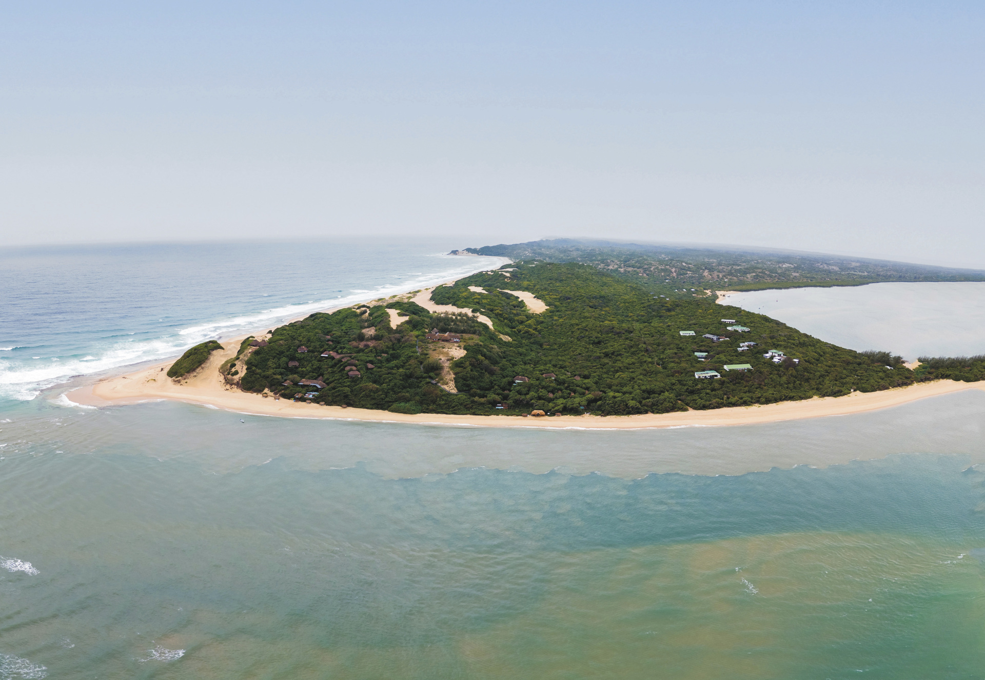 Im Süden Mozambiques auf dem Dünenkamm der Machangulo Halbinsel unweit des Dorfes Santa Maria mit traumhaftem Blick auf das Meer und die gegenüberliegende Insel Inhaca. Ca. 1-1,5 Stunden Bootsfahrt vom Hafen Maputo entfernt. Für Selbstfahrer per Allradfahrzeug in ca. 4 Stunden von Maputo aus zu erreichen.