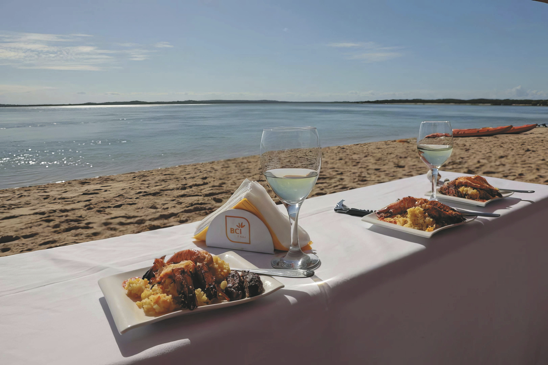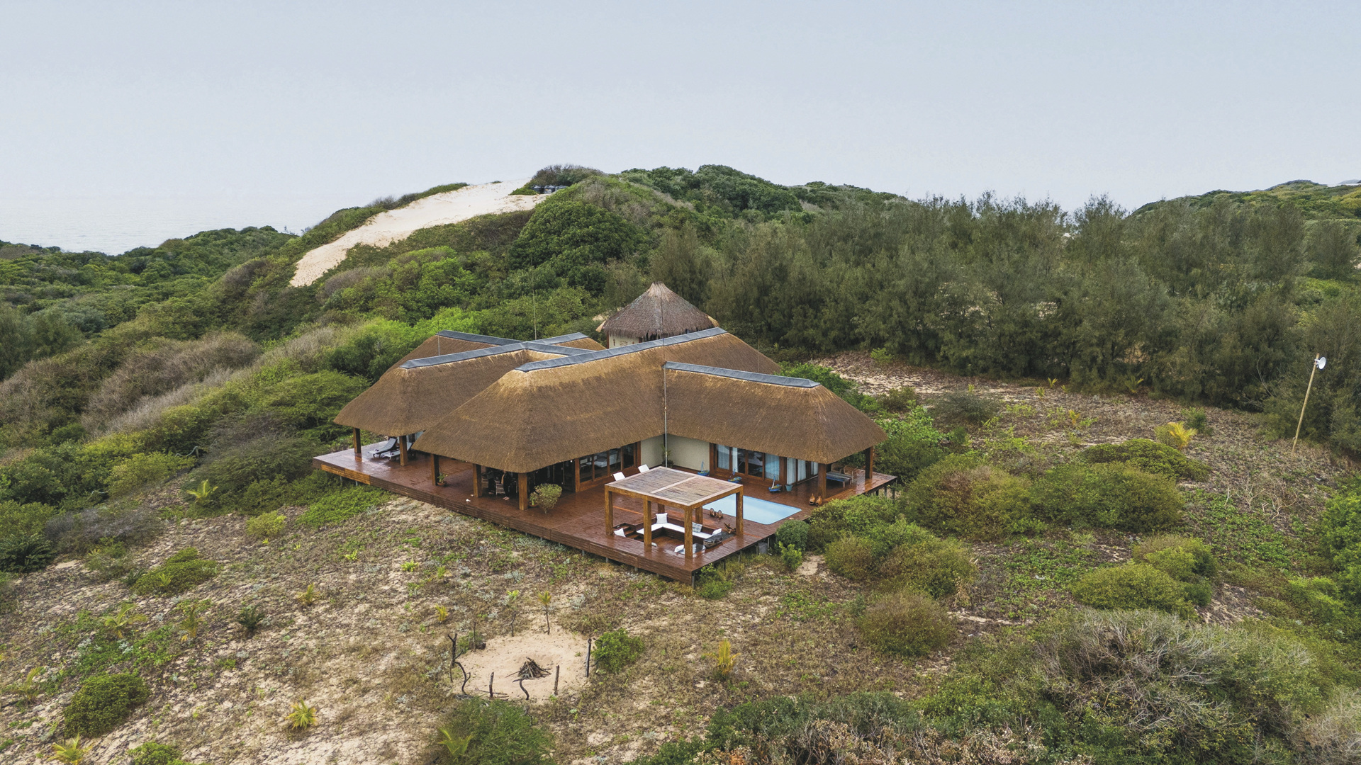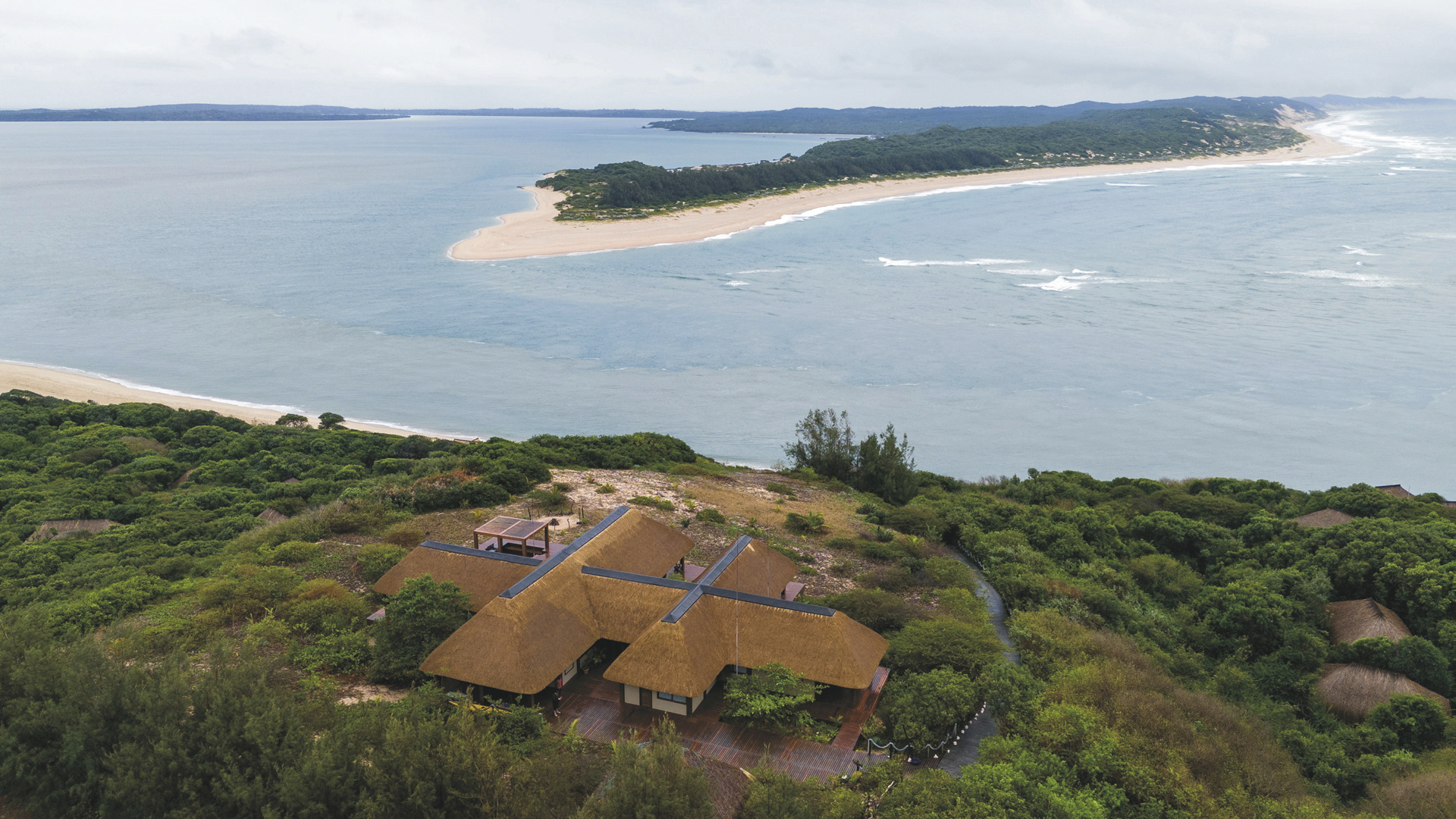 Im Süden Mozambiques auf dem Dünenkamm der Machangulo Halbinsel unweit des Dorfes Santa Maria mit traumhaftem Blick auf das Meer und die gegenüberliegende Insel Inhaca. Ca. 1-1,5 Stunden Bootsfahrt vom Hafen Maputo entfernt. Für Selbstfahrer per Allradfahrzeug in ca. 4 Stunden von Maputo aus zu erreichen.