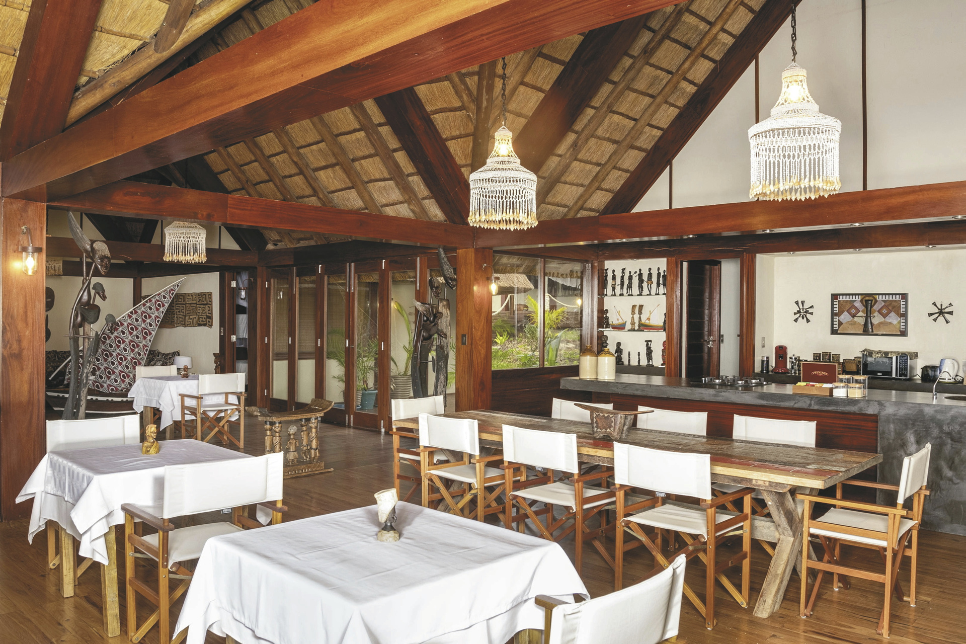 In der kleinen Villa werden Sie sich gleich heimisch fühlen, da es aufgebaut ist wie ein privates Wohnhaus, dekoriert mit einheimischen Holzarbeiten. Im Hauptbereich finden Sie den kombinierten Wohn-Essbereich mit einer gemütlichen Sitzecke und dem Barbereich. Große Fenster lassen viel Licht herein und bieten einen wunderschönen Blick. Wer den Weg zum Strand nicht auf sich nehmen möchte entspannt am Pool und genießt von hier den Blick über das glitzernde, blaue Meer. Zum Strand führt ein Weg vom Dünenkamm hinab. Es stehen viele verschiedene Aktivitäten, um die Umgebung und die Natur zu erkunden, zur Auswahl. Ein absoluter Höhepunkt ist das Mittagessen am Strand mit frischem gegrilltem Fisch. Eingeschlossene Aktivitäten: Schnorcheln, Fahrt durch die Mangroven im Inhaca Marine Reserve, Mittagessen am Strand, Fat Bike-Nutzung, Kanufahren, Stand-up paddeln. Optionale Aktivitäten: Hochseefischen, Ausflug nach Inhaca, Meeressafari, Pirschfahrt im Maputo Elephant Reserve, Besuch des Dorfes Santa Maria, tauchen, Wasserski/Wakeboard fahren.