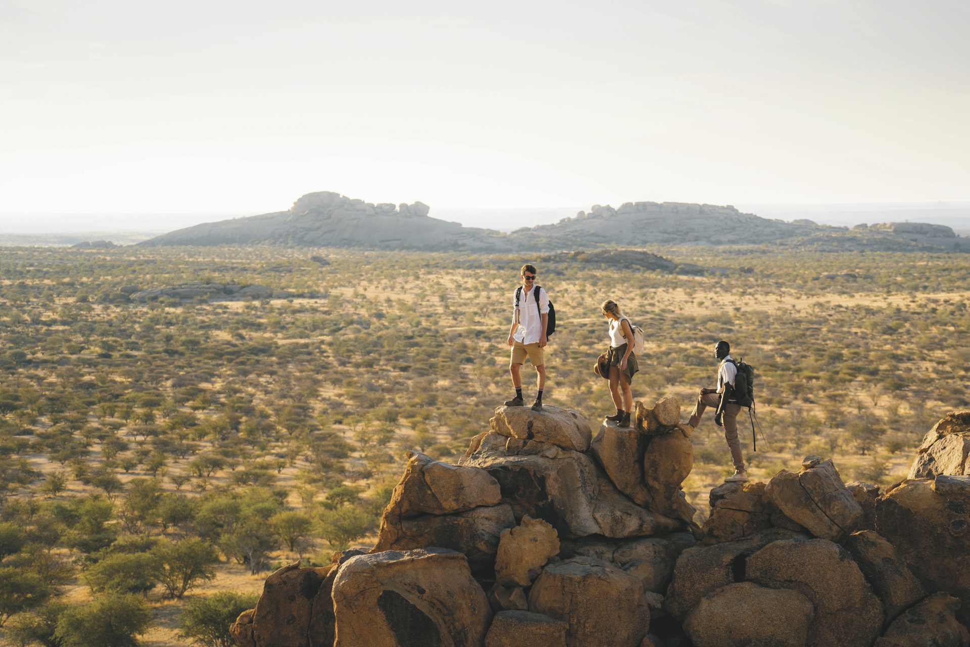 Die Lodge überblickt die bezaubernd schöne Landschaft des Erongo Gebirges und liegt in der näheren Umgebung vieler prähistorische Felsmalereien, die Sie erahnen lassen, wie das Leben der San vor vielen Jahren gewesen sein muss. Vom Restaurant und der Bar genießen Sie einen überwältigenden Panoramablick. Der Pool lädt nach einem erlebnisreichen Tag zum Entspannen und Ausruhen ein. Am Abend sitzen Sie an der Feuerstelle und können, fernab jeglicher Zivilisation, das funkelnde Firmament bestaunen. Nehmen Sie sich vor dem Abendessen etwas Zeit und begeben Sie sich mit einem Lodgemitarbeiter auf einen der vielen umliegenden Granitfelsen und genießen Sie dort einen spektakulären Sonnenuntergang. Kostenloses WLAN finden Sie im Hauptgebäude. Optionale Aktivitäten: geführte Wanderungen, Mountainbike, oder E-Bike Touren; Panoramafahrten, auch zu den Felsmalereien, ein Besuch im lebendigen Museum der San, des Weiteren können Sie auf markierten Wegen die Umgebung mit dem Mountainbike, dem E-Bike oder zu Fuß alleine erkunden. Besichtigungen der Felskunst auch auf den benachbarten Farmen Etemba und Omandumba runden Ihre Erfahrungen mit der San Kultur ab.