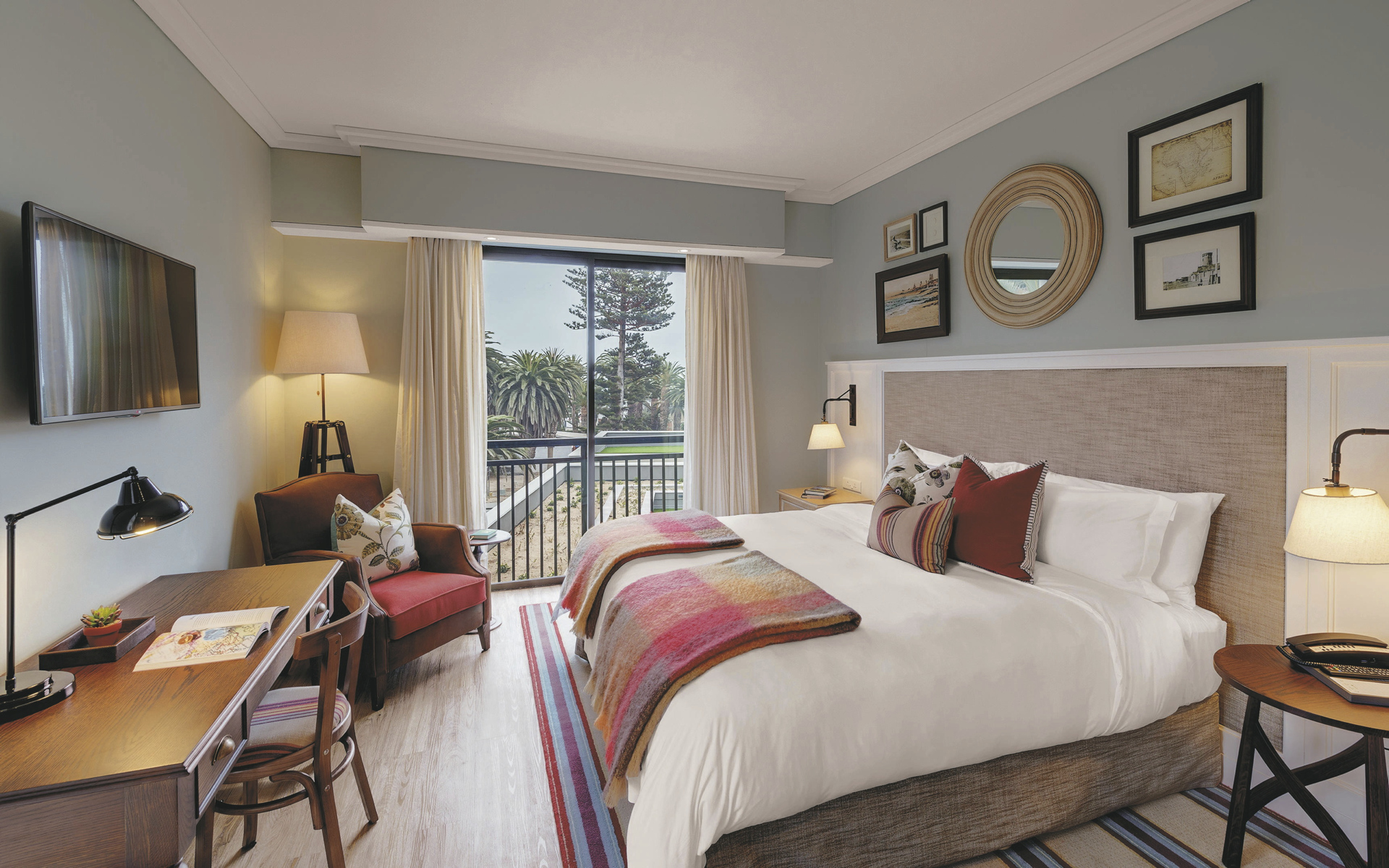 Modern und luxuriös erwartet Sie das bekannte Strand Hotel. Die Einrichtung ist eine gelungene Kombination aus Großstadt-Flair und luftigem Strandhaus-Charme. Das Hotel ist mit drei ausgezeichneten Restaurants und einem Biergarten ein Paradies für Schlemmer. Egal ob frische Salate, Meeresfrüchte, ein gutes Stück Fleisch oder doch nur Kaffee und Kuchen, im Strand Hotel kommen Sie auf jeden Fall auf Ihre Kosten. Im schönen Lounge-Bereich und auf der herrlichen Terrasse kann man problemlos verweilen und den Sonnenuntergang genießen. Es stehen Ihnen außerdem ein voll ausgestatteter Fitnessraum und ein Spa mit Sauna und Dampfbad zur Verfügung. Nutzen Sie die Zeit in Swakopmund für eine der vielen lokalen Aktivitäten oder genießen Sie einfach die Aussicht auf den Atlantik.
