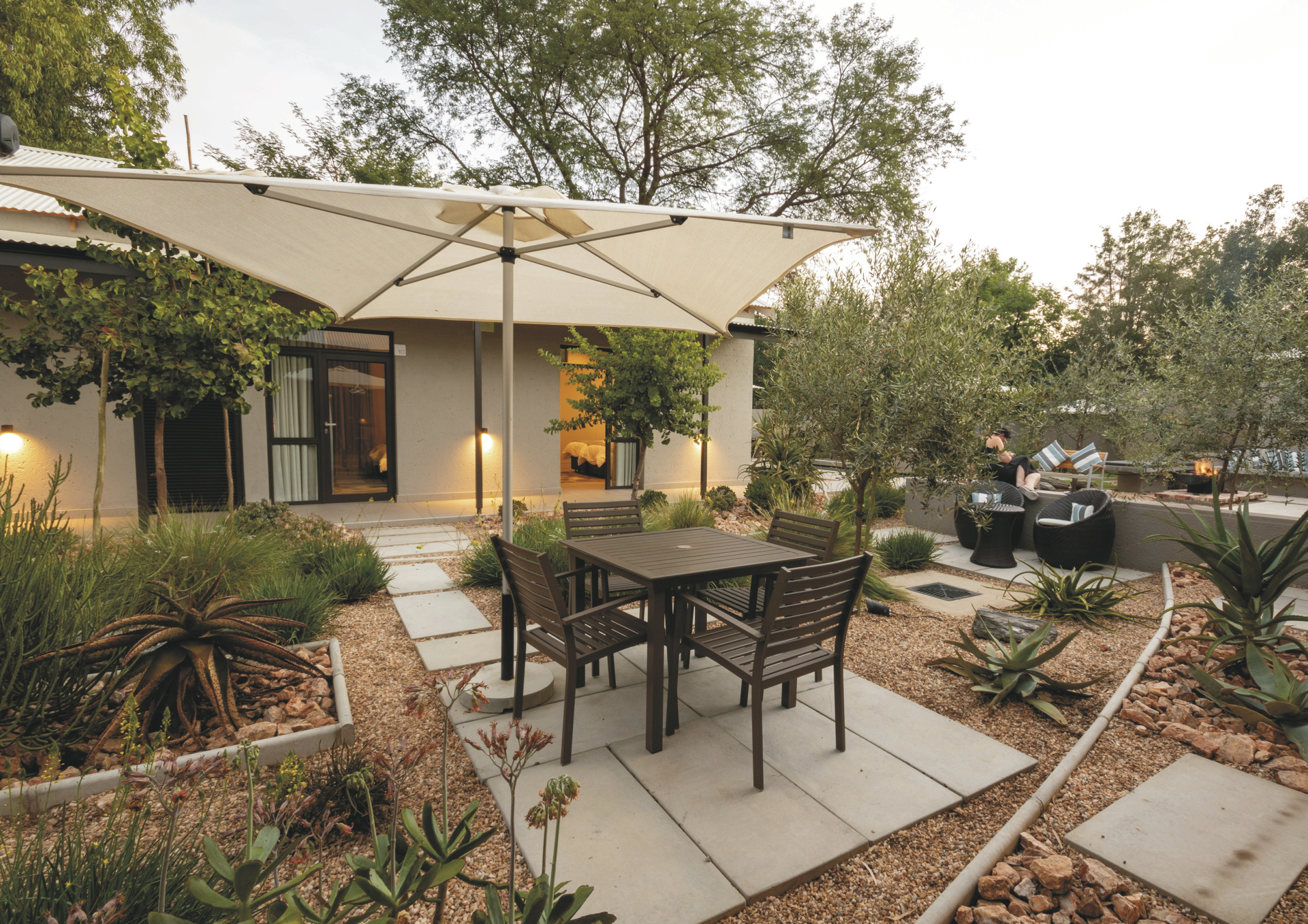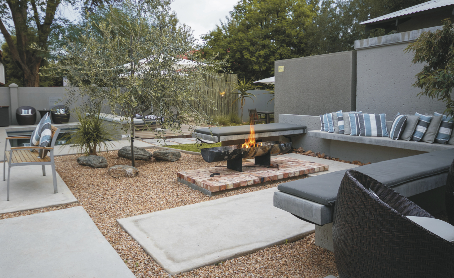 Helles, luftiges Ambiente und ein offenes Design empfängt Sie in diesem großzügigen und modernen Gästehaus. Der Tag startet im freundlichen Frühstücksraum oder auf der Terrasse mit einem guten Frühstück und frischem Brot. In der gemütlichen Lounge finden Sie die Honesty-Bar sowie einen Kamin für kühle Abend. Der großen Innenhof ist hübsch bepflanzt und bietet mehrere gemütliche Sitzmöglichkeiten zum Entspannen und Plaudern. Nach einem ereignisreichen Tag in Windhoek sorgt der Pool für Abkühlung oder die Feuerstelle für einen gemütlichen Tagesausklang. Ihr Fahrzeug findet einen sicheren Abstellplatz auf dem Gelände des Gästehauses.