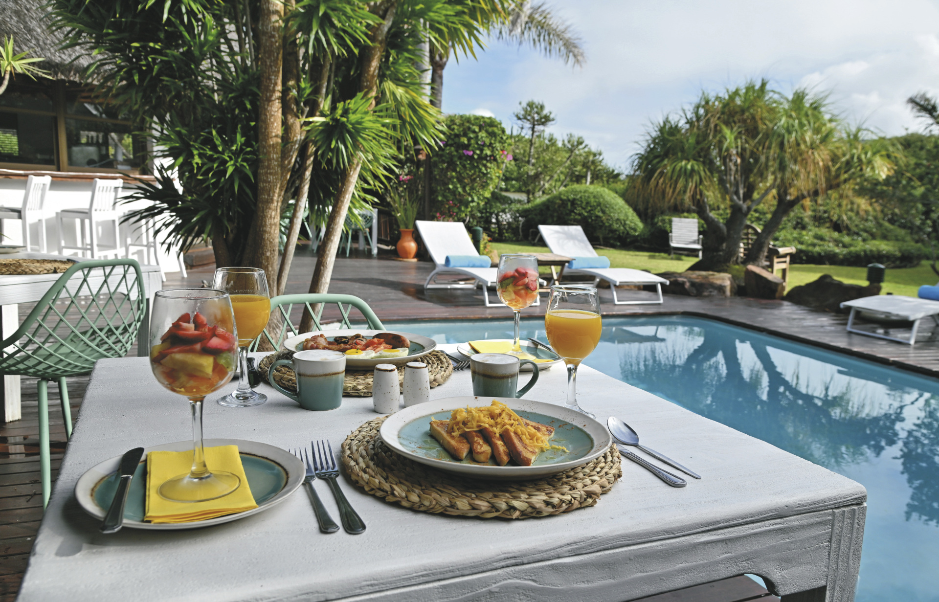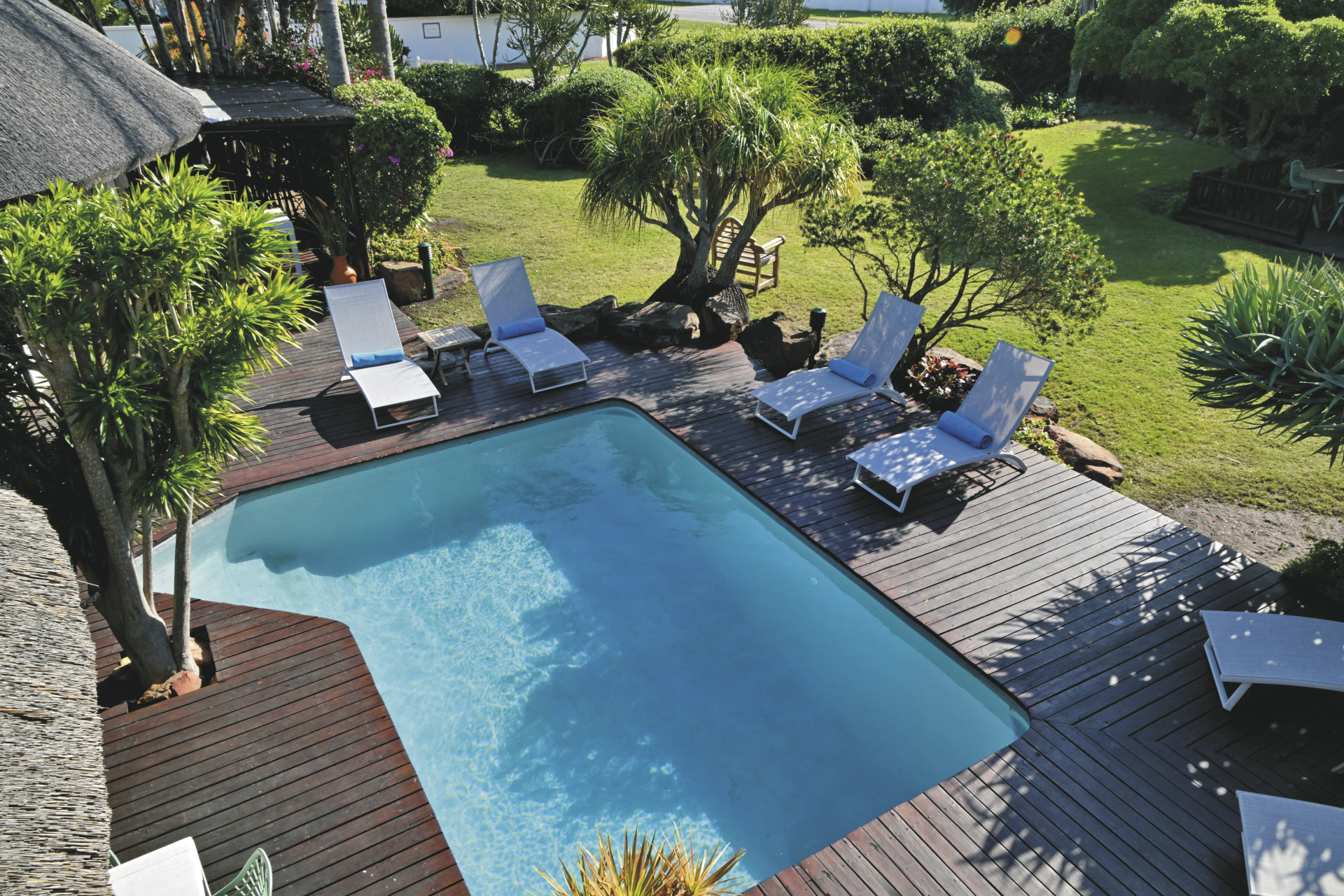Das reetgedeckte Gästehaus ist tropisch-afrikanisch eingerichtet, mit bunten Accessoires und hellen Holzmöbeln strahlt es eine behagliche Gemütlichkeit aus. Im Speisesaal oder auf der überdachten Terrasse wird Ihnen morgens ein opulentes Frühstück serviert. Ihnen steht außerdem eine gemütliche Lounge, eine Honesty Bar und kostenloses WLAN zur Verfügung. Im tropischen Garten rund um den Pool finden Sie ausreichend Sitzgelegenheiten und Sonnenliegen für müssige Stunden. Für einen Besuch am Strand können Sie sich Handtücher ausleihen.