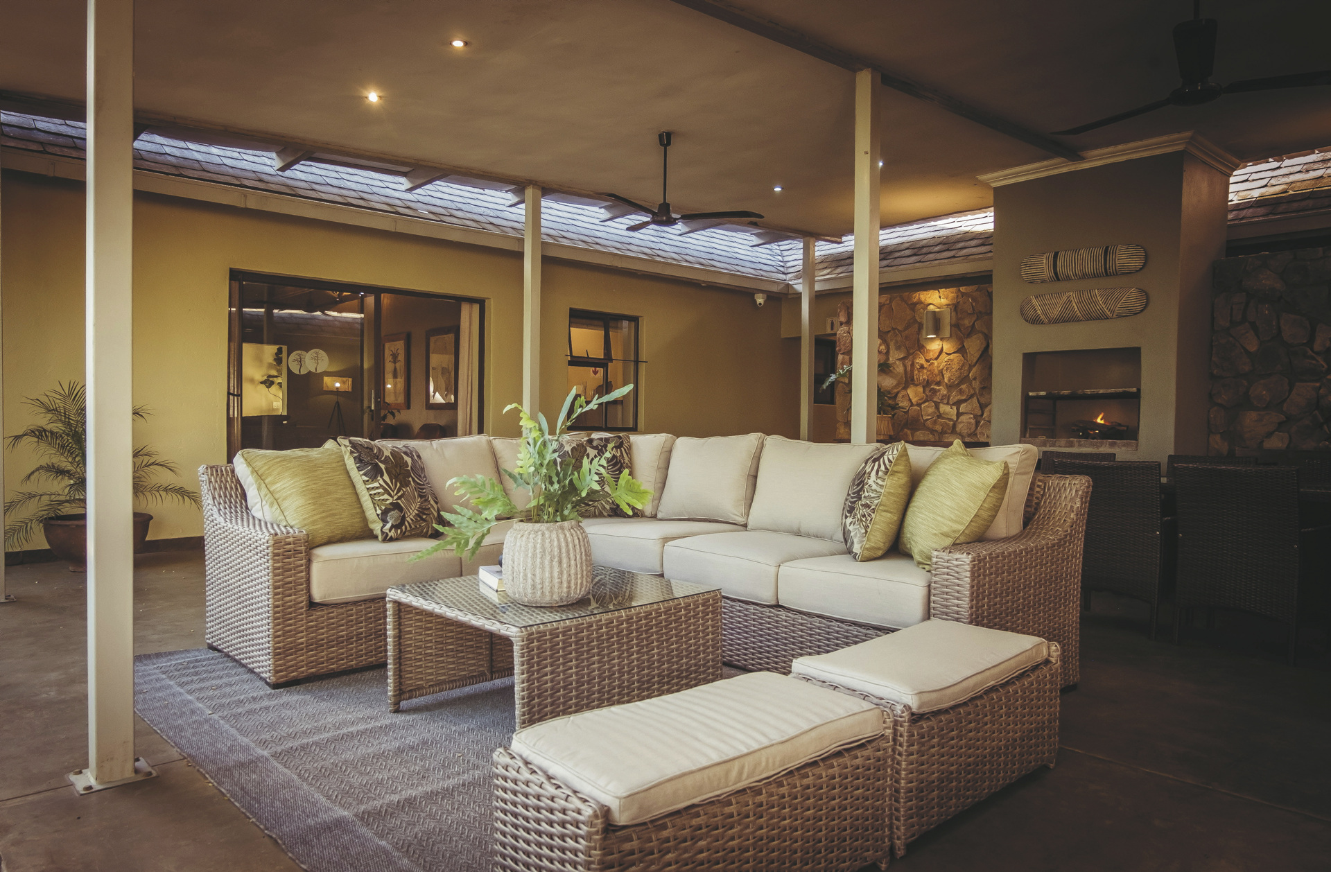 Die kleine Lodge teilt sich das Grundstück mit dem größeren Schwesterhotel Bushveld Terrace Hotel, beide werde jedoch unabhängig voneinander geführt und Gäste der kleinen Lodge genießen viel Privatsphäre. Entsprechend gemütlich und familiär geht es auch in der Lodge zu. Im zentralen Bereich finden Sie das Speisezimmer, die Bar, eine großzügige Lounge mit TV und Kamin sowie eine überdachte Terrasse, auf der meist die Mahlzeiten eingenommen werden. Im eingezäunten Garten sorgt ein kleiner Pool für Erfrischung, am Abend brennt hier ein loderndes Feuer und verspricht ein geselliges Beisammensein. Der Spa-Bereich und ein Fitnesscenter im Schwesterhotel können ebenfalls in Anspruch genommen werden. Eingeschlossene Aktivität: Pirschfahrten. Optionale Aktivität: geführte Buschwanderung ab/bis Schwesterhotel.