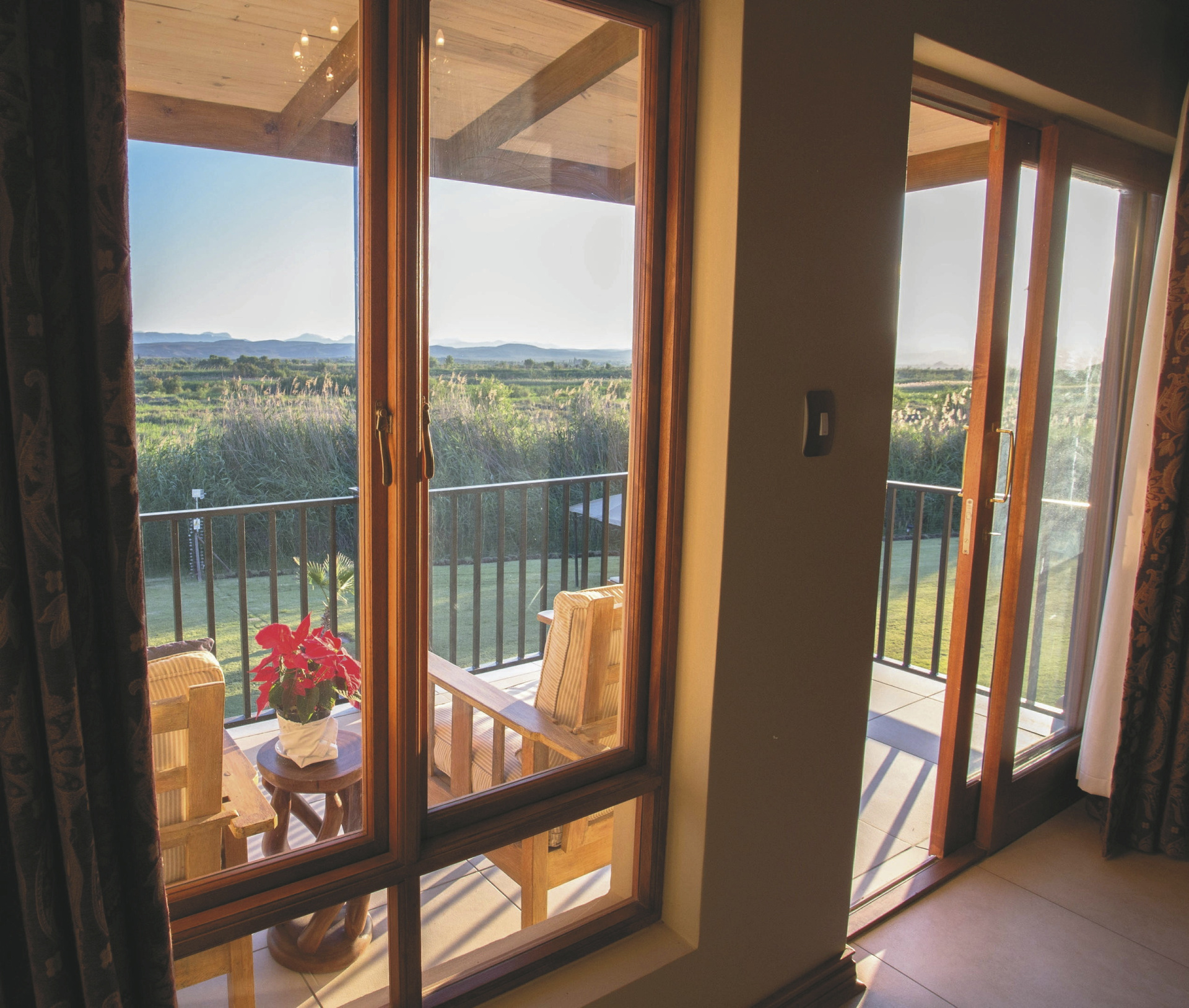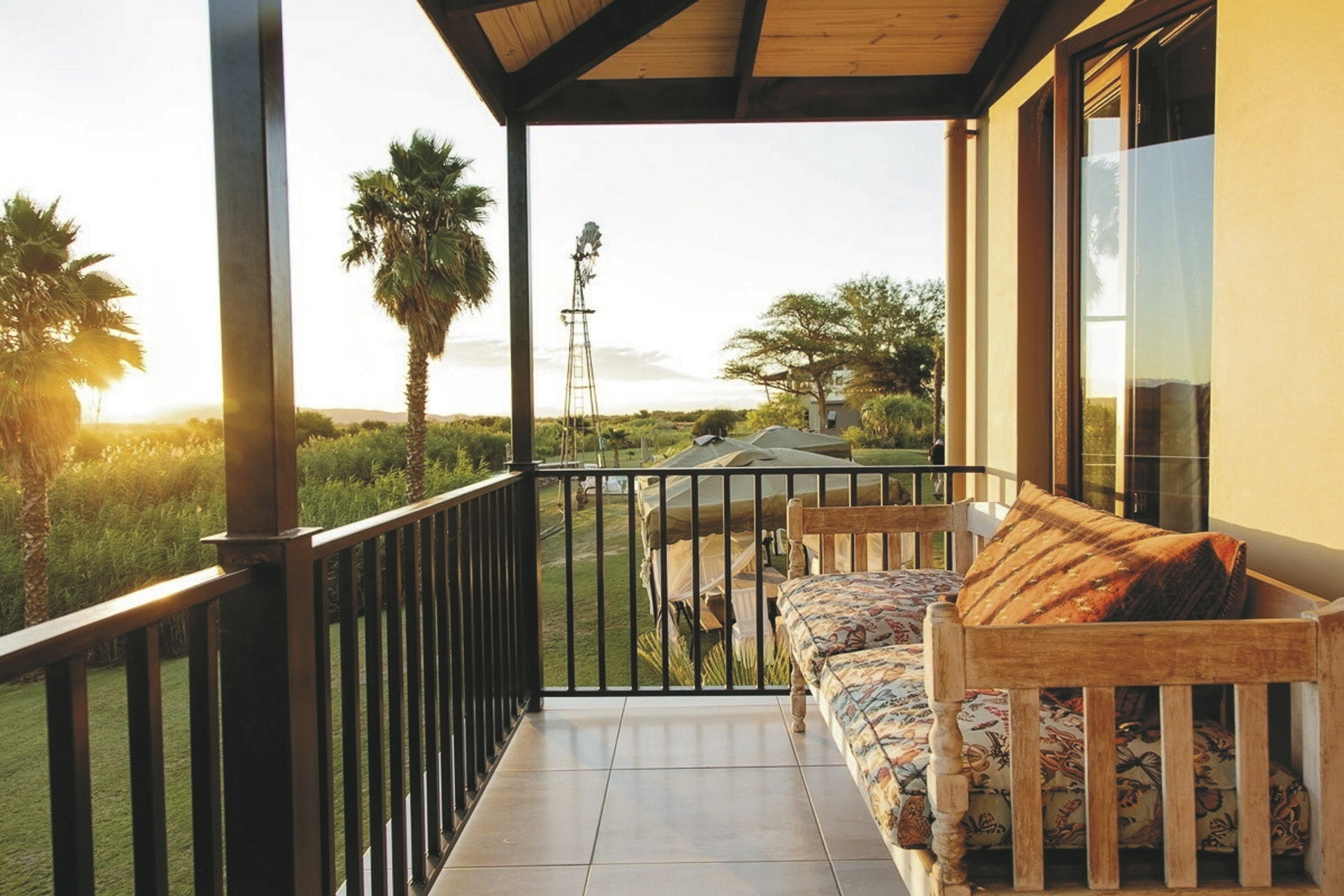 Das 150 Jahre alte Farmhaus wurde liebevoll in einen Gästebetrieb umgewandelt und um zahlreiche Nebengebäude, in denen die meisten Zimmer untergebracht sind, erweitert. Im Restaurant erwartet Sie einzigartige Karoo-Küche mit vielen Produkten aus eigenem Anbau bzw. eigener Zucht. Die urige Bar, die gemütliche Lounge oder aber die Feuerstelle unter den Sternen Afrikas, das sind die Treffpunkte der Gäste am Abend. Für entspannte Stunden finden Sie am Salzwasserpool oder im Spa ein gutes Plätzchen. In der hauseigenen Boutique können Sie, neben klassischen Souvenirs, vor allem Produkte und Lederwaren vom Strauß direkt vom Erzeuger erwerben. Kostenloses WLAN finden Sie im Haupthaus. Wer die Umgebung gerne aktiv erkunden möchte, kann sich ein Mountain-Bike oder ein Kanu ausleihen oder auf einem der vielen ausgewiesenen Wanderwegen zu Fuß die Region erwandern. Optionale Aktivität: Erdmännchen-Safari.