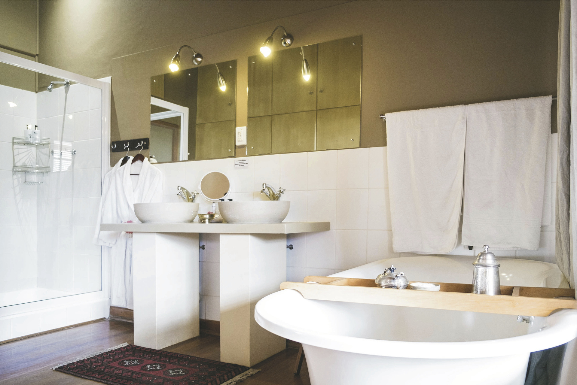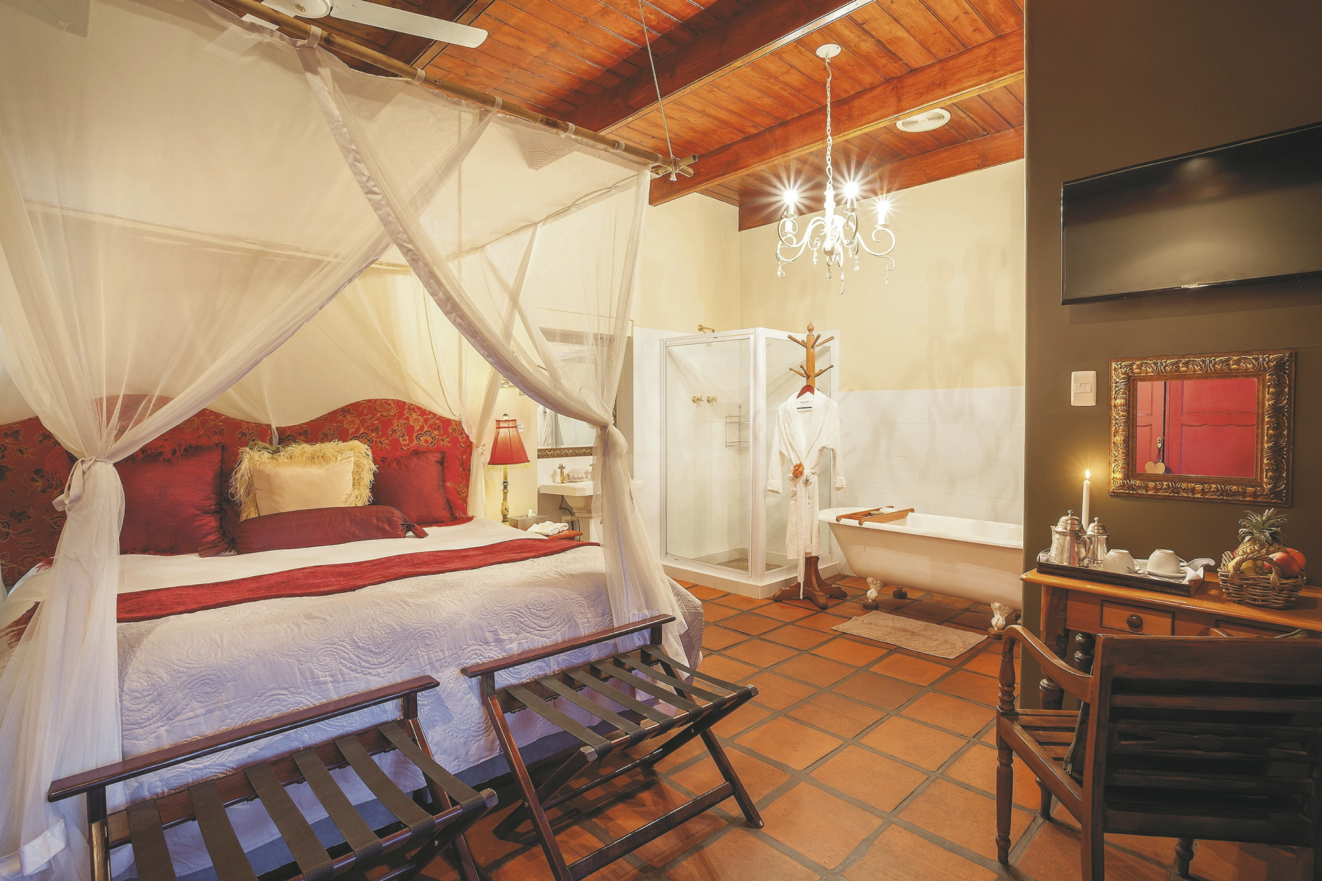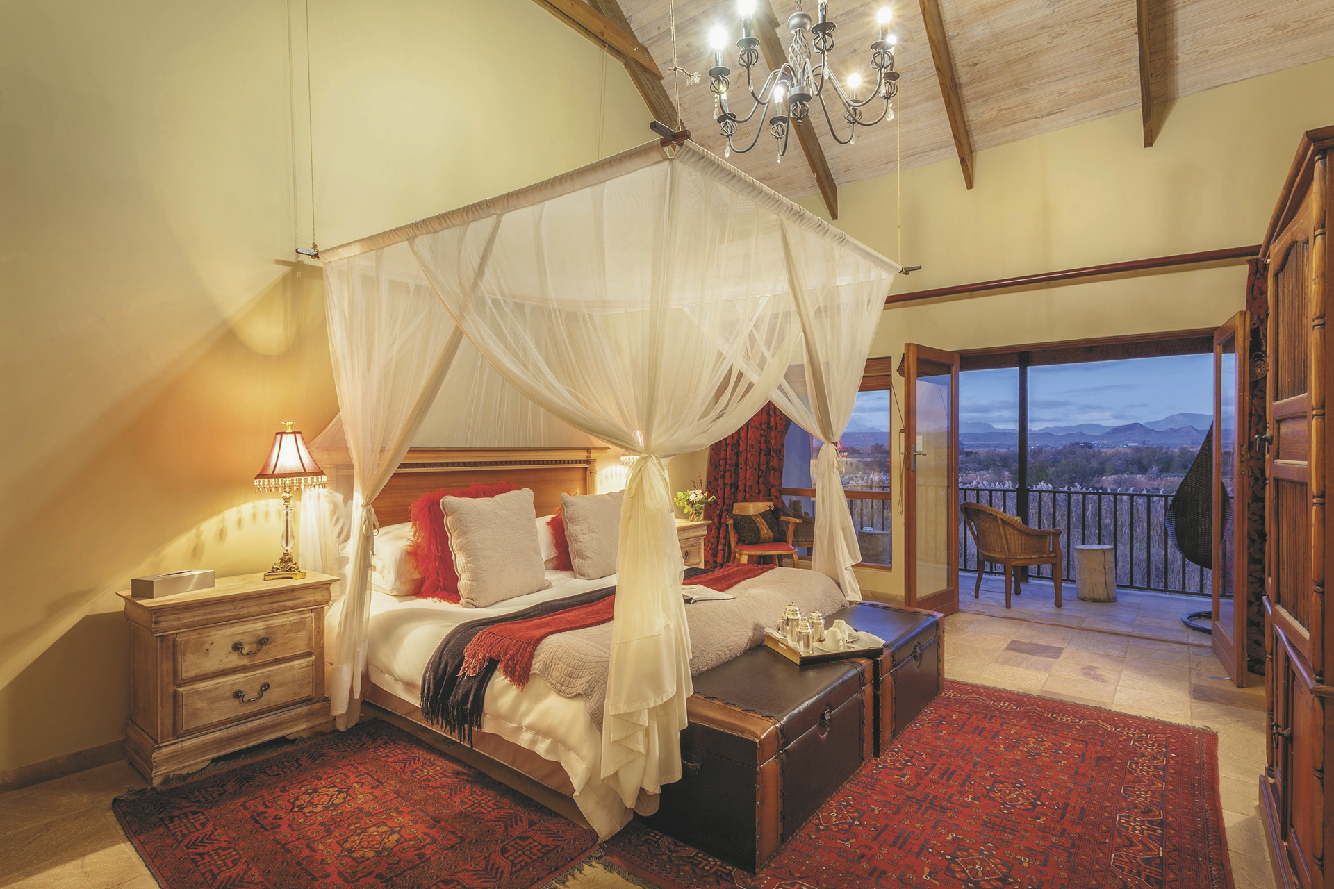 Die 24 individuell eingerichteten Zimmer versprühen einen charmanten Farmcharakter. Sie befinden sich in verschiedenen Gebäuden und unterscheiden sich durch den Ausblick und die Größe voneinander. Jedes hat ein eigenes, teils offenes Badezimmer, außerdem einen Fön, Klimaanlage, Safe, Kühlschrank, WLAN, Tee-/Kaffeezubereiter, TV, Moskitonetz; einige Zimmer haben einen Kamin.