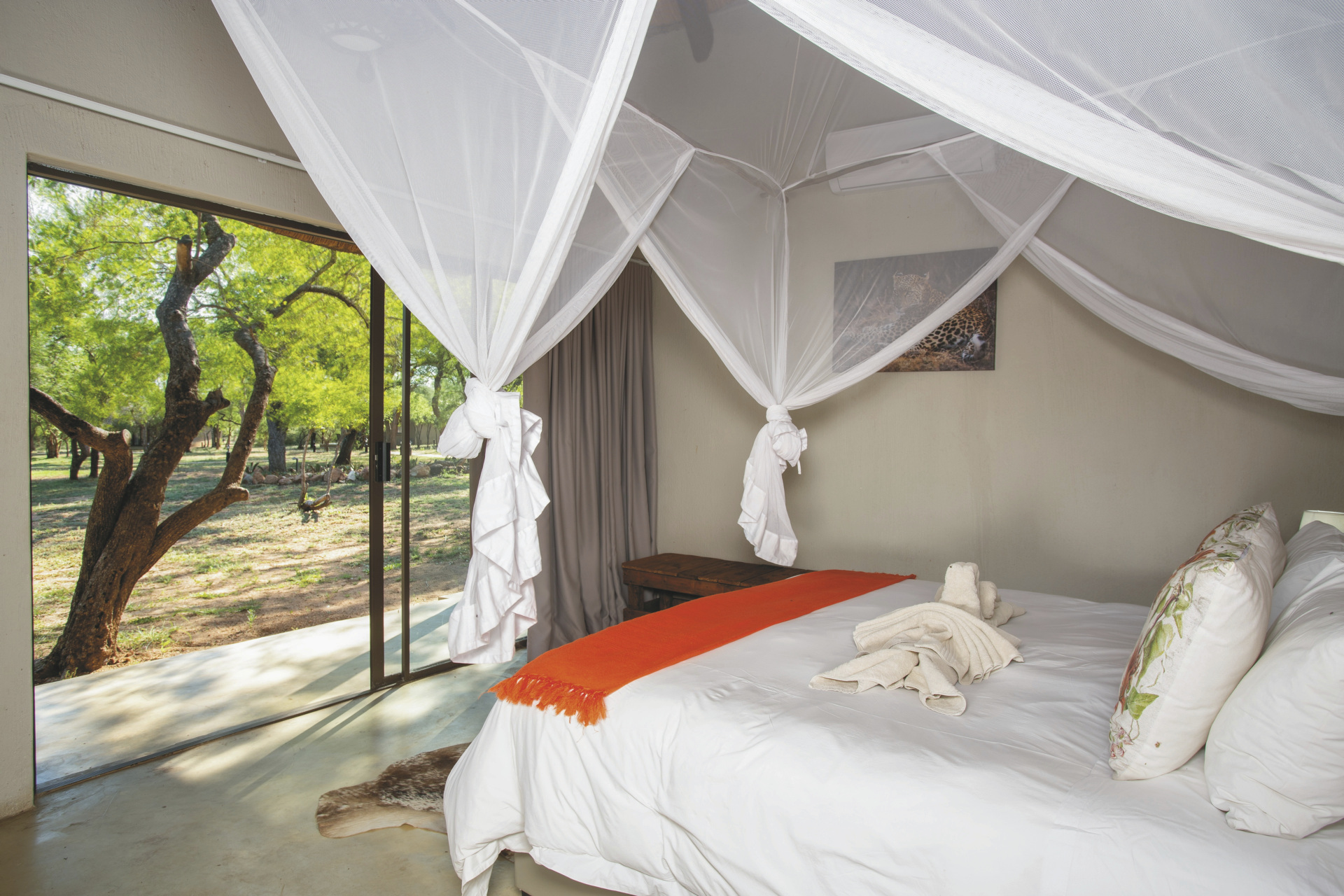 Diese gemütliche Lodge besticht durch ihre überschaubare Größe und das klassisches Safari-Ambiente. Im Hauptbereich befindet sich neben dem Speisezimmer ein Bar- und Loungebereich, wo man sich am Abend trifft, und eine überdachte Terrasse. In der Boma wird bei gutem Wetter rund um ein knisterndes Feuer das Abendessen eingenommen. Im Garten finden Sie für ein paar müßige Stunden einen kleinen Pool, eine offene Lounge sowie ein Kinderspielgerät. Am nahe gelegenen Wasserloch können Sie das Wild beim Trinken beobachten. Optionale Aktivitäten: Pirschfahrten im benachbarten Rietspruit Big 5 Game Reserve oder im Krüger Nationalpark und geführte Buschwanderungen.
