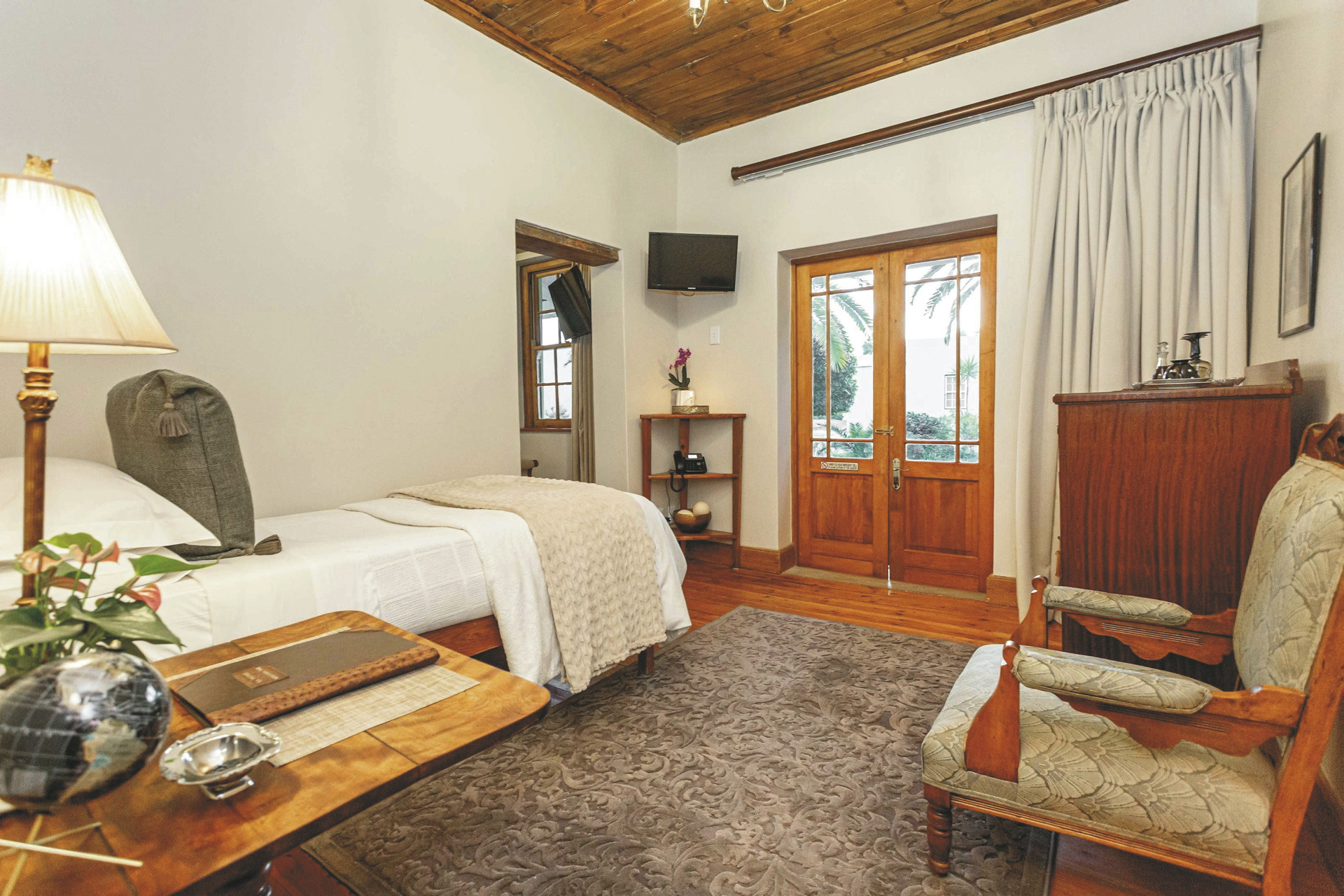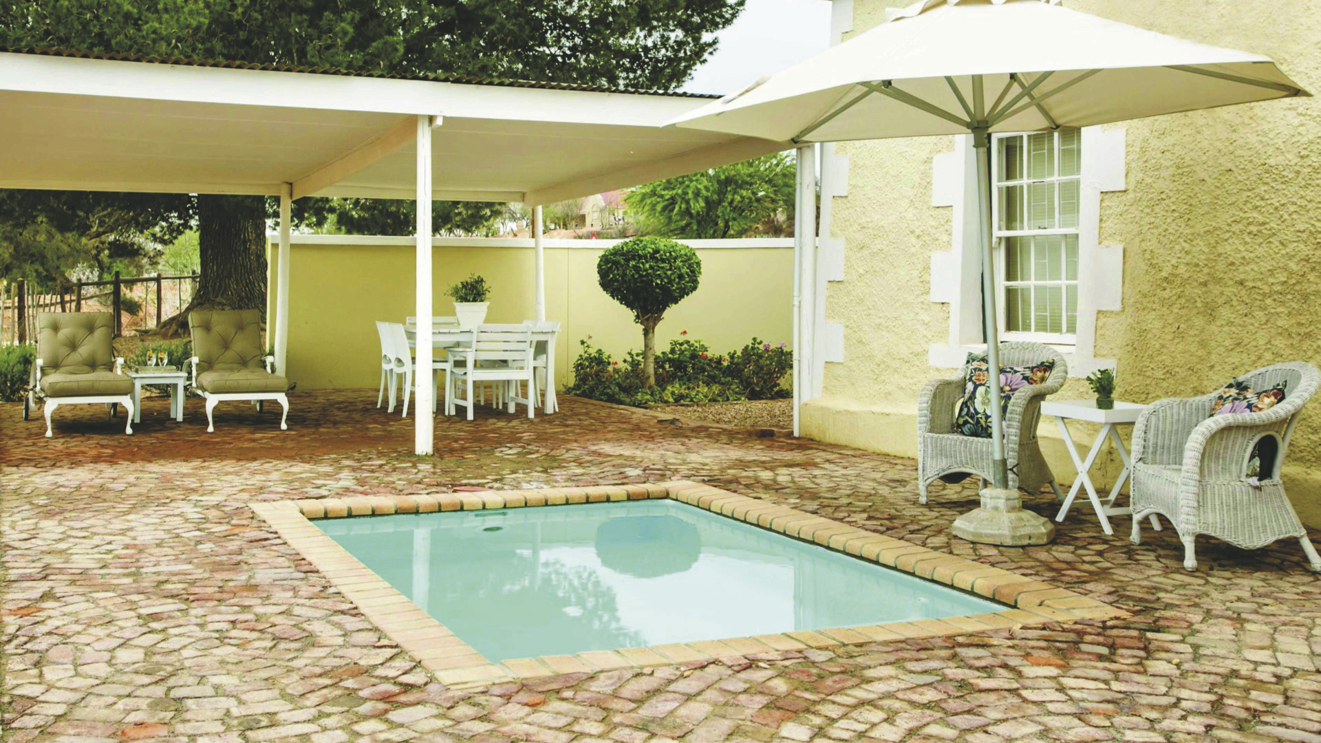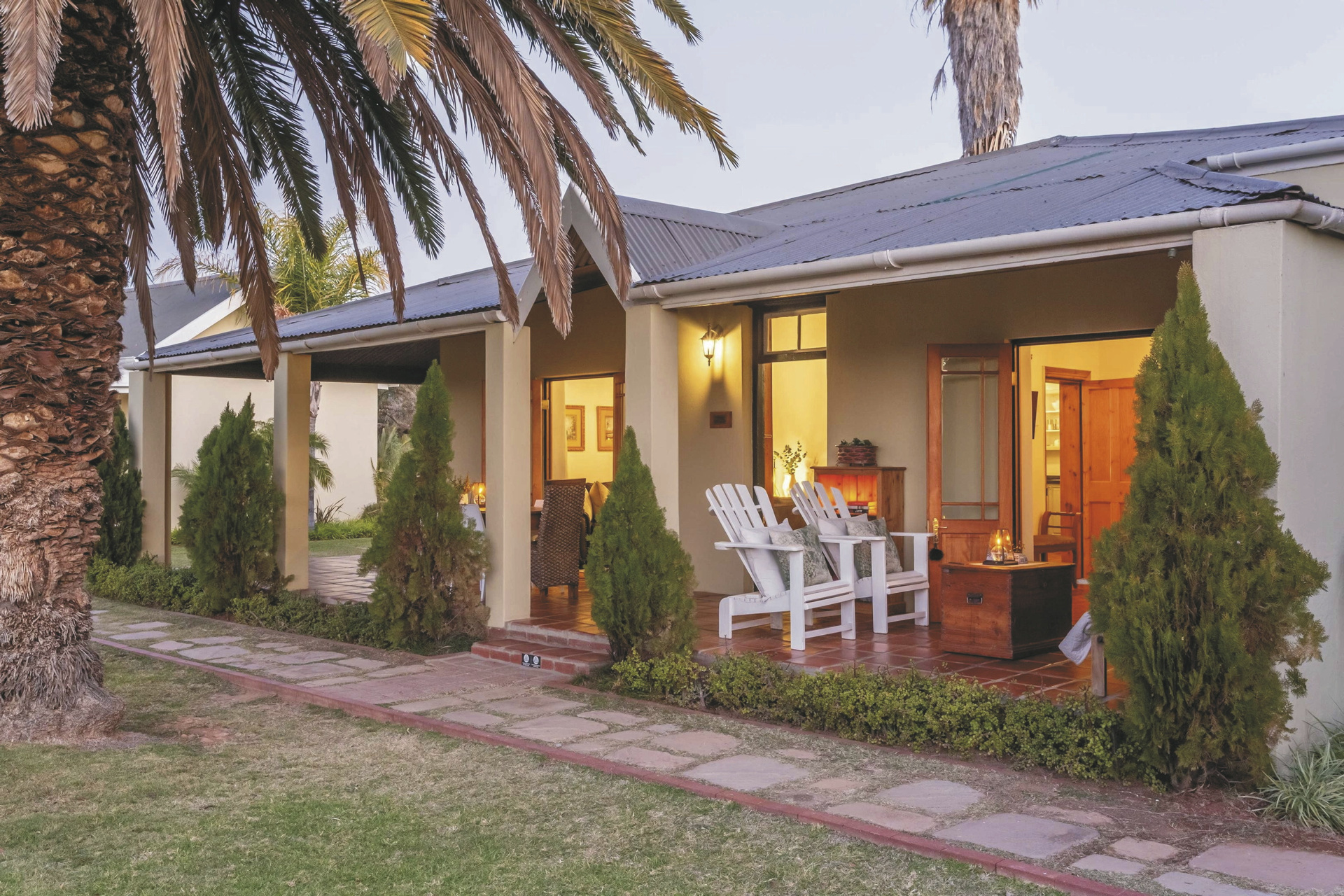 Das alte Farmhaus von 1902 ist geschmackvoll mit erlesenen Möbeln ausgestattet. Im Speisezimmer wird Ihnen hervorragende südafrikanische Farmküche serviert, Lamm, Rind und Strauß aus eigener Zucht kombiniert mit frischem Gemüse. In der gemütlichen Lounge können Sie sich mit anderen Gäste austauschen. Eine umlaufende Veranda verleiht dem Haus einen viktorianischen Schliff. Entspannen Sie am Salzwasserpool mit weitem Blick über die Karoo Landschaft, oder lassen Sie sich im hauseigenen Spa von kundigen Händen verwöhnen. Die optionale Farmtour führt Sie hinter die Kulissen einer Karoo-Farm, sie wird vom Farmer persönlich durchgeführt und ist daher saisonal abhängig vom Farmbetrieb. Mit dem offenen Safarifahrzeug geht es hinaus auf die verschiedenen Feldern mit Luzernen, Schafen und Straußen, wo Sie neben Informationen zum Farmbetrieb auch viel Interessantes über die Geschichte der Region erfahren.