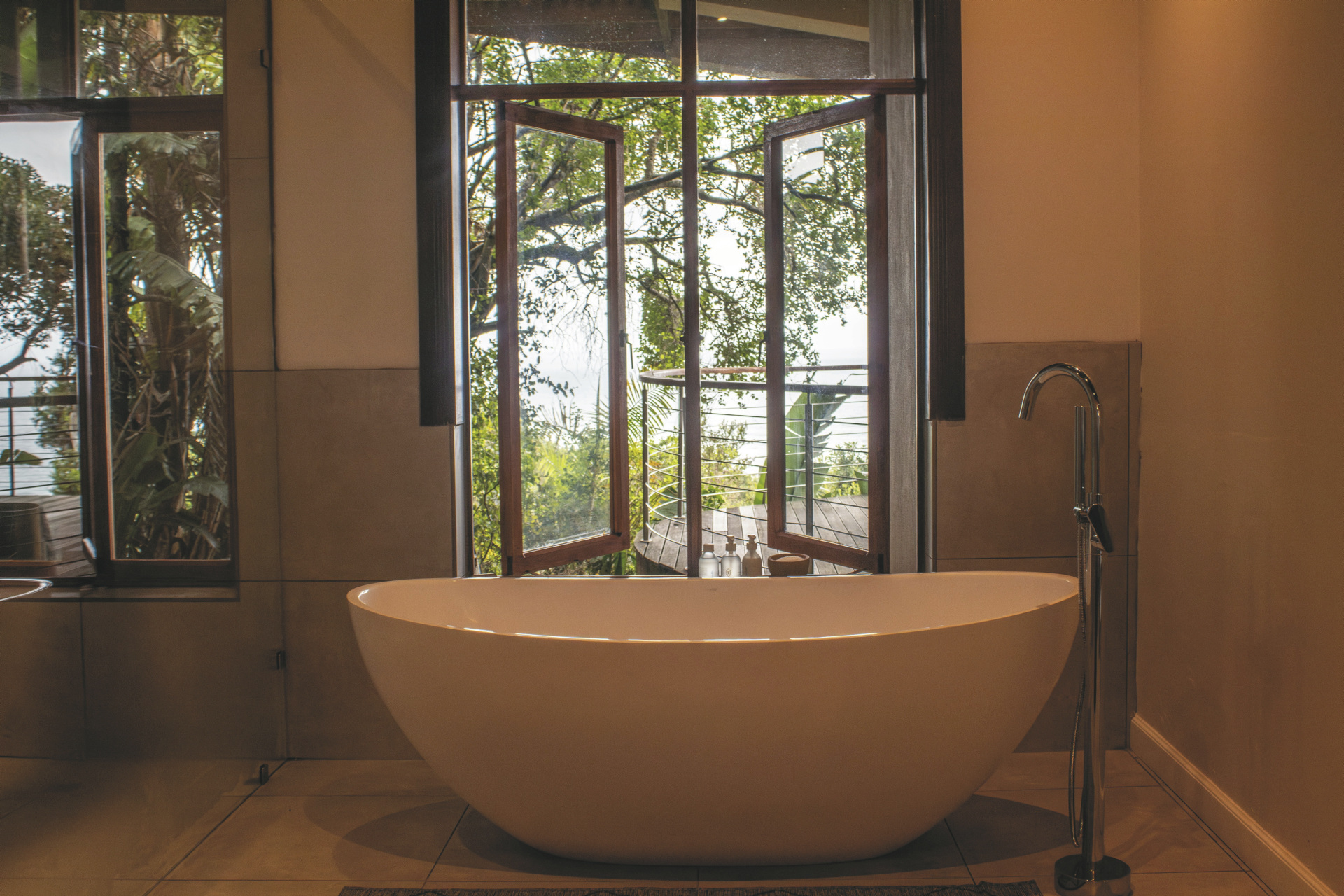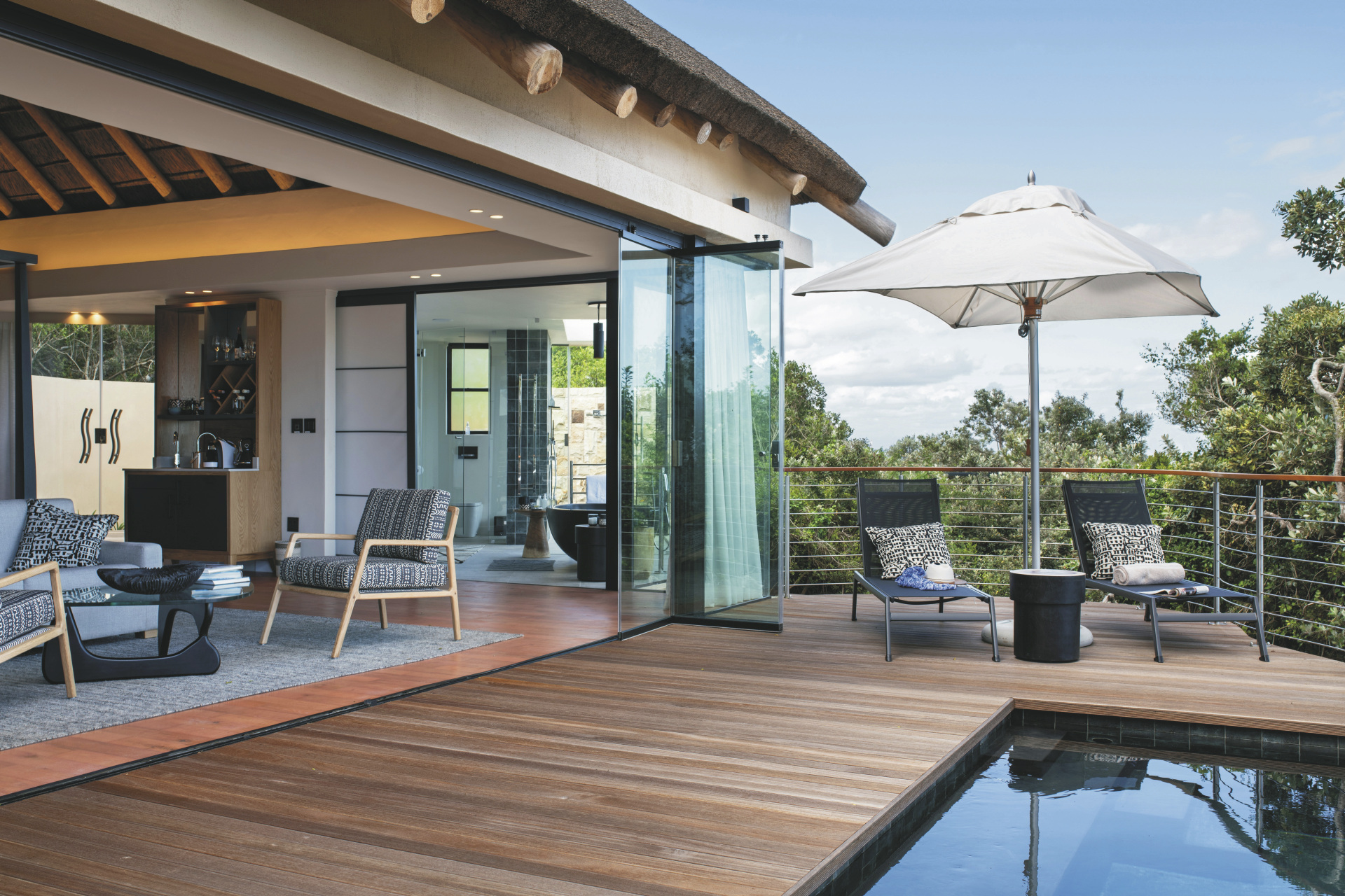 Die 3 etwas kleineren Lodge-Suiten befinden sich im Hauptgebäude. Die 4 Ocean-Suiten liegen ein wenig versteckt im Wald und bieten zwei Badezimmer, eines mit Dusche und eines mit einer Jacuzzi-Badewanne. Absolut exquisit sind die 2 Pool-Suiten mit einer zusätzlichen Außendusche, einem Plunge Pool, einem gemütlichen Tagesbett sowie einer Feuerstelle auf der Terrasse, und nicht zu vergessen die spektakuläre Aussicht über das Reservat bis zum Meer. Alle Suiten verfügen über ein helles Bad mit großen Panoramafenster vor der Badewanne und der Dusche, einen Loungebereich, Safe, TV, Minibar, Tee-/Kaffeezubereiter, kostenloses WLAN, Klimaanlage und eine große Terrasse. Die Fensterfront lässt nicht nur viel Licht in die Suiten, sie kann auch großzügig geöffnet werden und bieten so ein tolles Ambiente.Für größere Familien und kleine Gruppen bietet sich das Private House an. Auf 2 Etagen verteilen sich 3 Schlaf- und Badezimmer, eine Fernsehlounge, die Küche sowie ein geräumiges Wohn-/Esszimmer mit TV und Kamin für gemeinsame Stunden. Jedes Zimmer hat entweder Zugang zur großen Terrasse, wo sich auch ein Plunge Pool befindet oder einen eigenen Balkon.