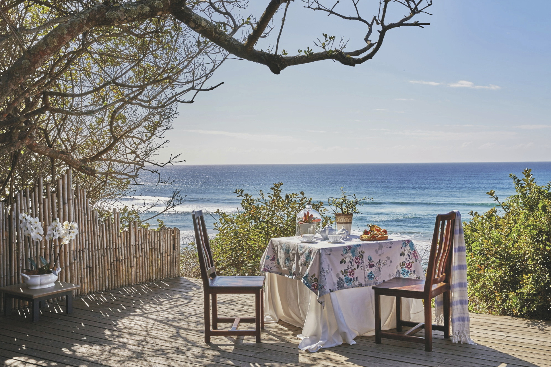 Als exklusivstes 5-Sterne-Refugium der Region erwartet Sie eine absolute Oase der Ruhe, des Luxus und Komforts. Edel und exklusiv zeigt sich die Inneneinrichtung, dezent unaufdringlich der Service, hohe Decken geben dem Haupthaus eine luftige Atmosphäre. Das Restaurant verfügt über einen großen Innenbereich, wie auch über eine überdachte Terrasse, die den Blick auf den üppigen Garten und den Pool freigibt. Am Abend brennt in der Feuerstelle ein einladendes Feuer. Man trifft sich mit anderen Gästen in der Bar, der Lounge oder der Bibliothek. Lassen Sie sich nach Herzenslust in einem der 2 Spa-Pavillions verwöhnen oder genießen Sie ausgiebige Saunagänge. Nur wenige Minuten zu Fuß durch den dichten Dünenwald führt ein kleiner Weg direkt zum herrlichen Sandstrand, für einen bequemen Strandaufenthalt steht Ihnen eine Sonnenterrasse zur Verfügung, dies ist der beste Ort um romantisch zu werden und die Sonne spektakulär im Meer versinken zu sehen.