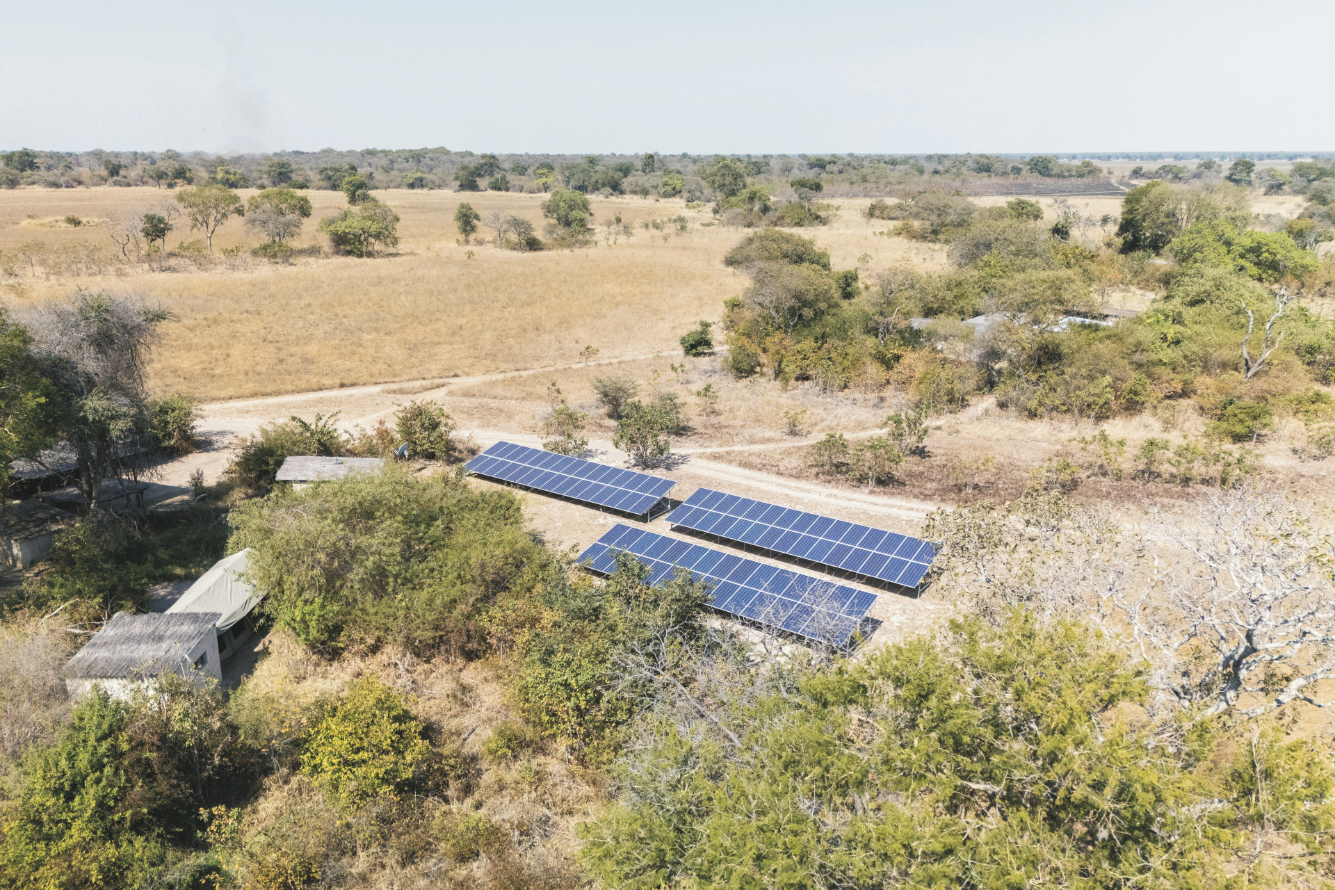 Die sogenannten „Vogelnester“ sind luxuriöse Zeltunterkünfte, die vier Meter über dem Boden thronen und einen weiten Blick über die Busanga Plains bieten. Jedes Nest verfügt über ein eigenes Bad mit Dusche, Einzelwaschbecken und separater Toilette sowie Moskitonetzen und Ventilator. Die Ausstattung ist schlicht und funktional, mit liebevollen Details wie gefiltertem Kaffee und Tee sowie solarbetriebener Stromversorgung. Ein Nest ist barrierefrei und mit einem elektrischen Lift ausgestattet