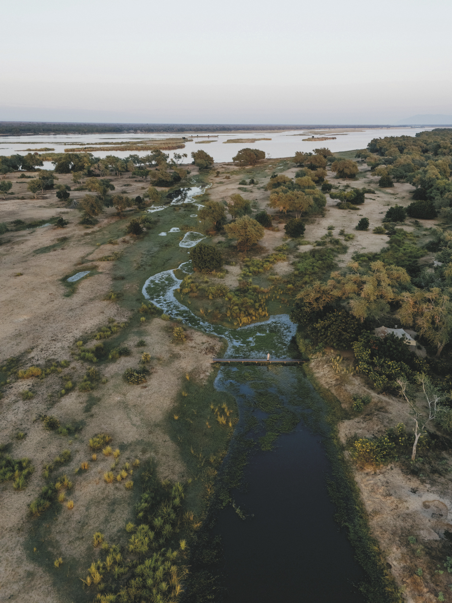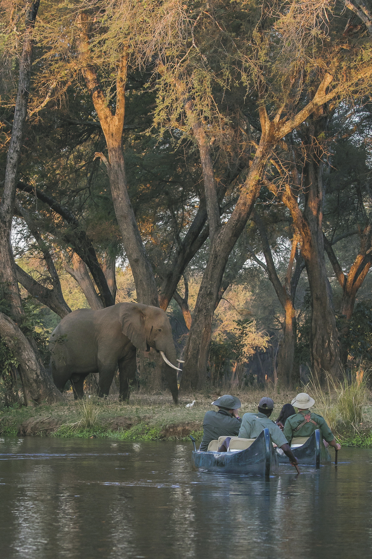 Das Camp liegt direkt am mächtigen Zambezi Fluss mitten im Lower Zambezi Nationalpark. Die Anreise erfolgt per Boot oder Fahrzeug ab Jeki Airstrip, der etwa 30 Minuten entfernt liegt. Der Flug von Lusaka dauert etwa 45 Minuten und bietet einen tollen Blick auf die Landschaften des Nationalparks.