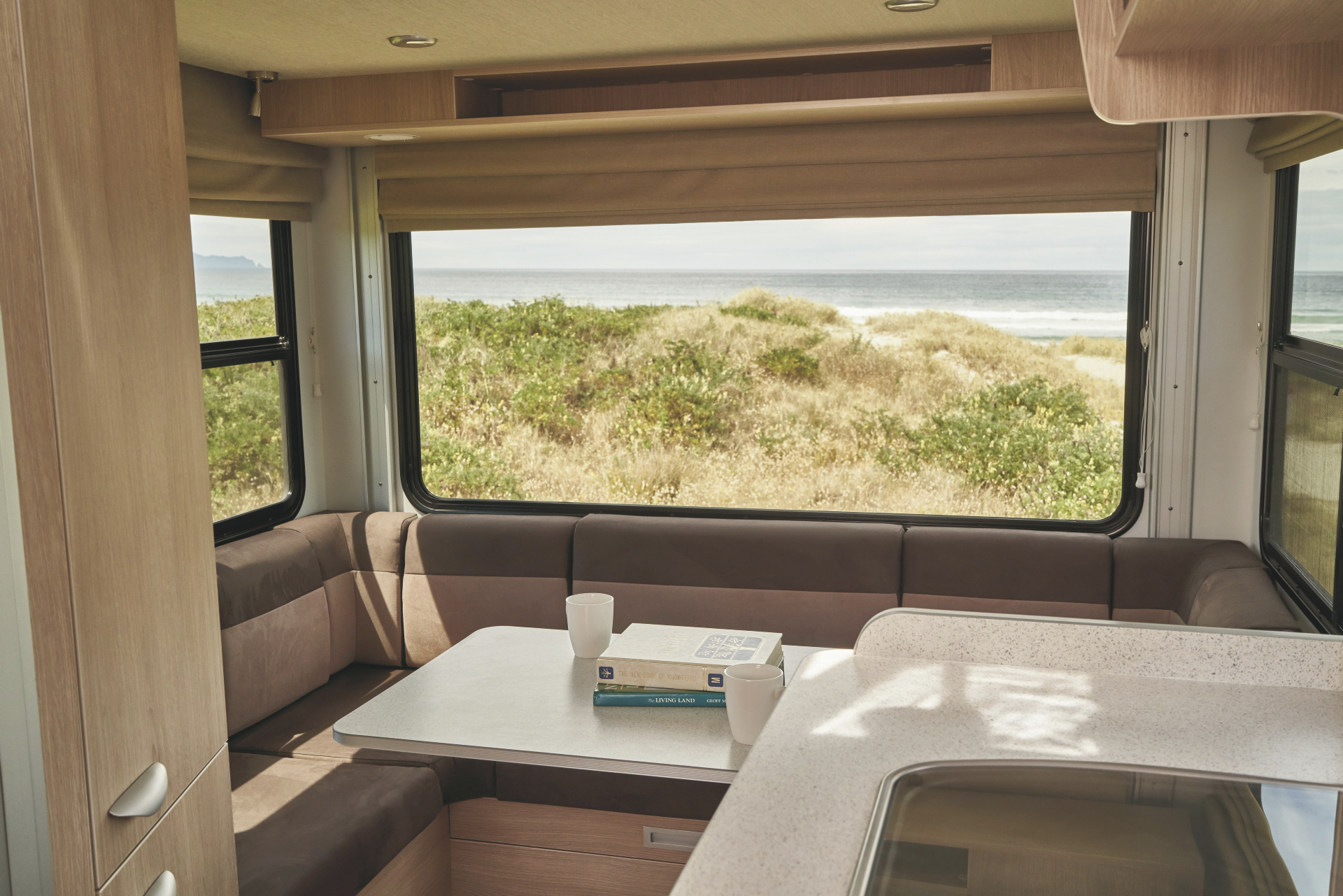 • 2 Sitzplätze in der Fahrerkabine (zum Wohnbereich drehbar)