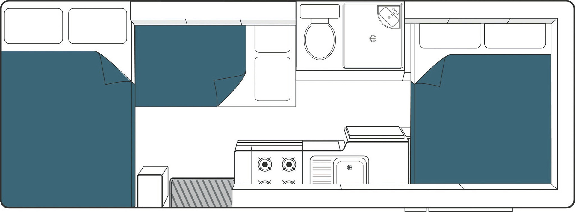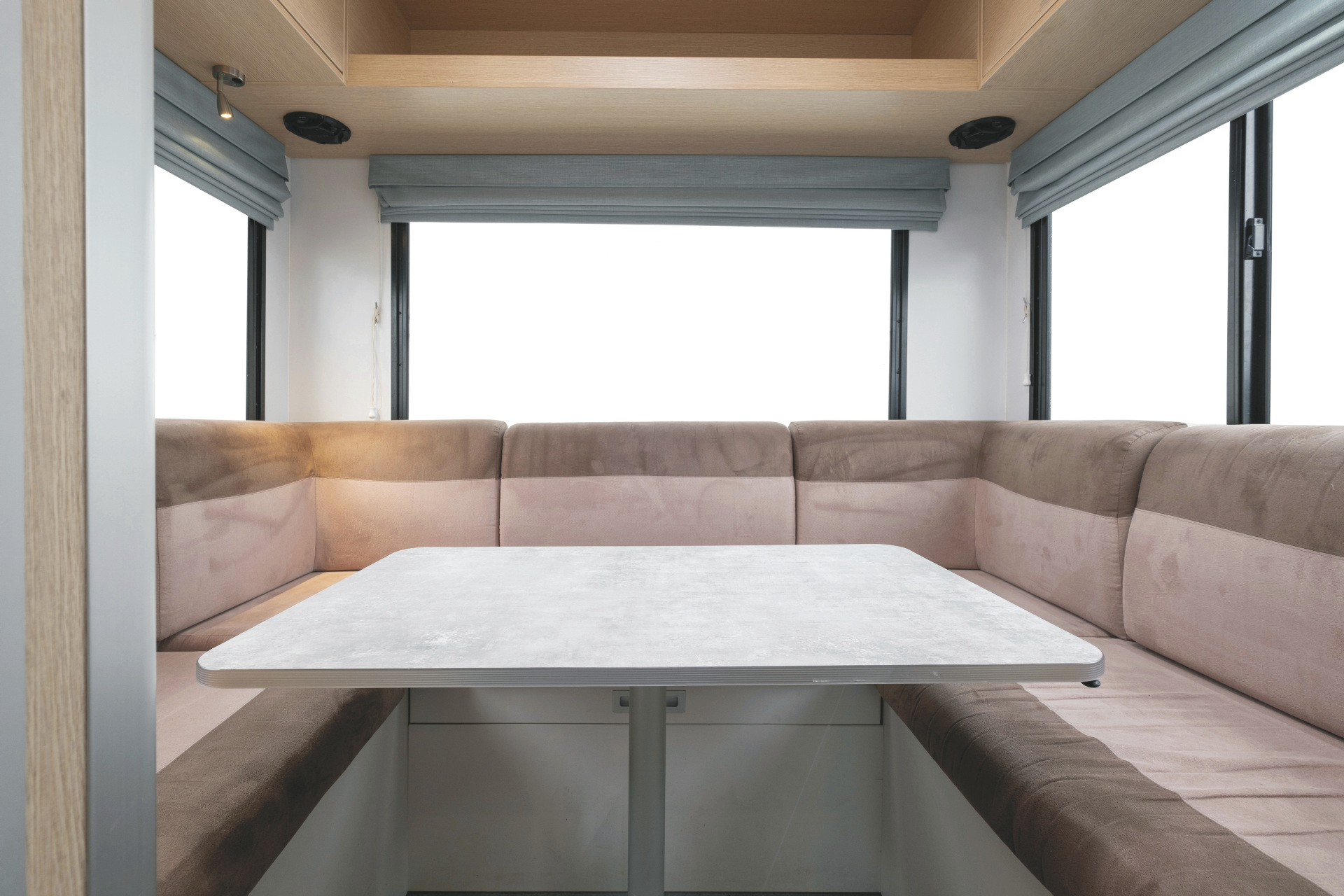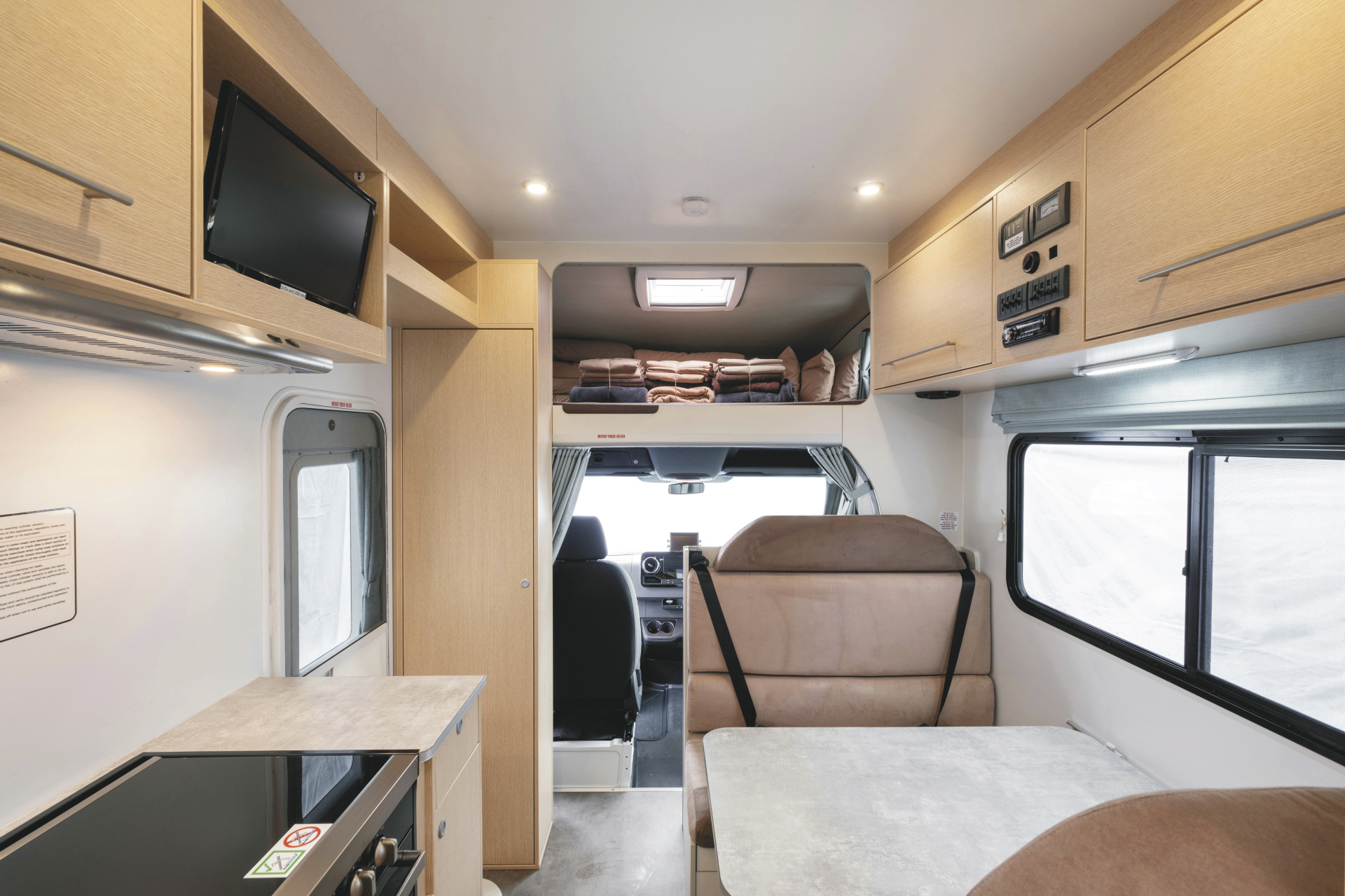 • Doppelbett über der Fahrerkabine 2,10 x 1,35 m (mit Schutznetz zur Sicherheit für Kinder)• Mittelsitzgruppe, umbaubar zum kleinen Doppelbett 1,84 x 1,15 m
