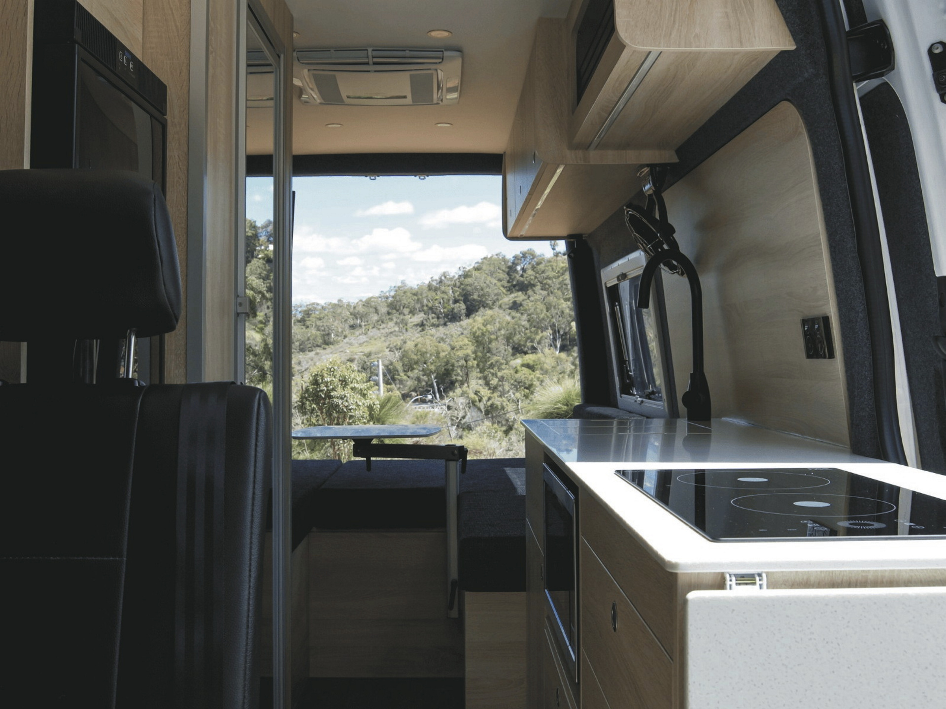 Der gut ausgestattete The Frontier Premium-Camper glänzt mit einer intelligenten Raumaufteilung, hochwertigem Interieur und großzügigem Stauraum im Heck. Zur Ausstattung zählen ein großes Bett sowie eine Nasszelle mit Dusche/WC. Ideal für 1-2 Reisende, die Komfort und Zuverlässigkeit suchen.