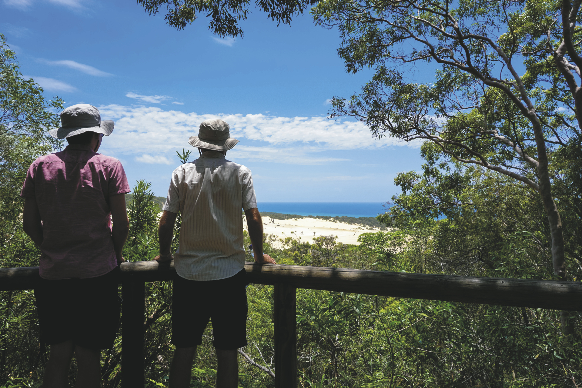 Wandern auf Fraser Island bedeutet u.a. üppig, tropischer Regenwald auf der größten Sandinsel der Welt und baden in Frischwasserseen im Weltnaturerbe.