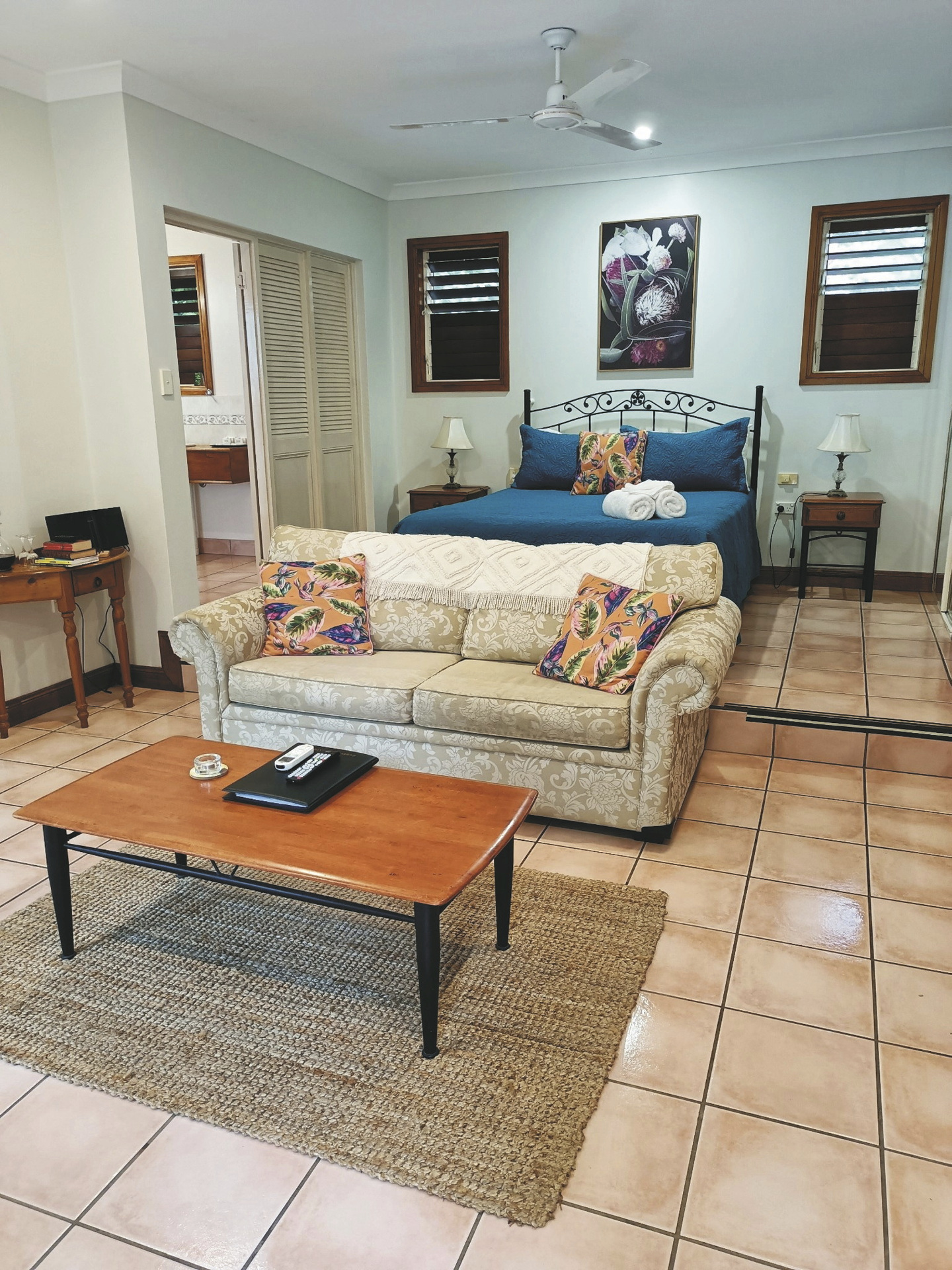 Es gibt lediglich 6 Cottages im Studio-Stil. Alle geräumig, mit einheimischen Hölzern dekoriert und für Selbstversorger geeignet. Die Garten-Cottages sind u.a. ausgestattet mit Klimaanlage, einem Queensize-Doppelbett, einer Kitchenette mit Kühlschrank, Mikrowelle, Toaster, Tee-/Kaffeezubereiter und Nespresso-Maschine. Weiterhin verfügen sie über ein Sofa, Esstisch/-stühle, einen elektrischen Kamin für gemütliche Abende sowie einen privaten Innenhof. Im Bad gibt es eine große begehbare Dusche, einen Fön und bequeme Bademäntel.