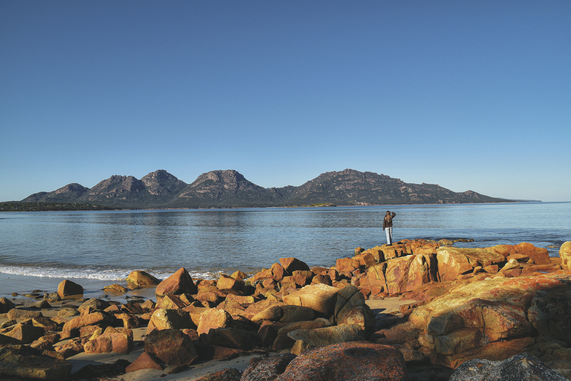 Kleine Anlage in exklusiver Lage auf der Freycinet-Halbinsel, mit Zugang zu privaten Stränden und weitem Blick über die Great Oyster Bay. Ideale Basis zur Erkundung der Freycinet-Region.
