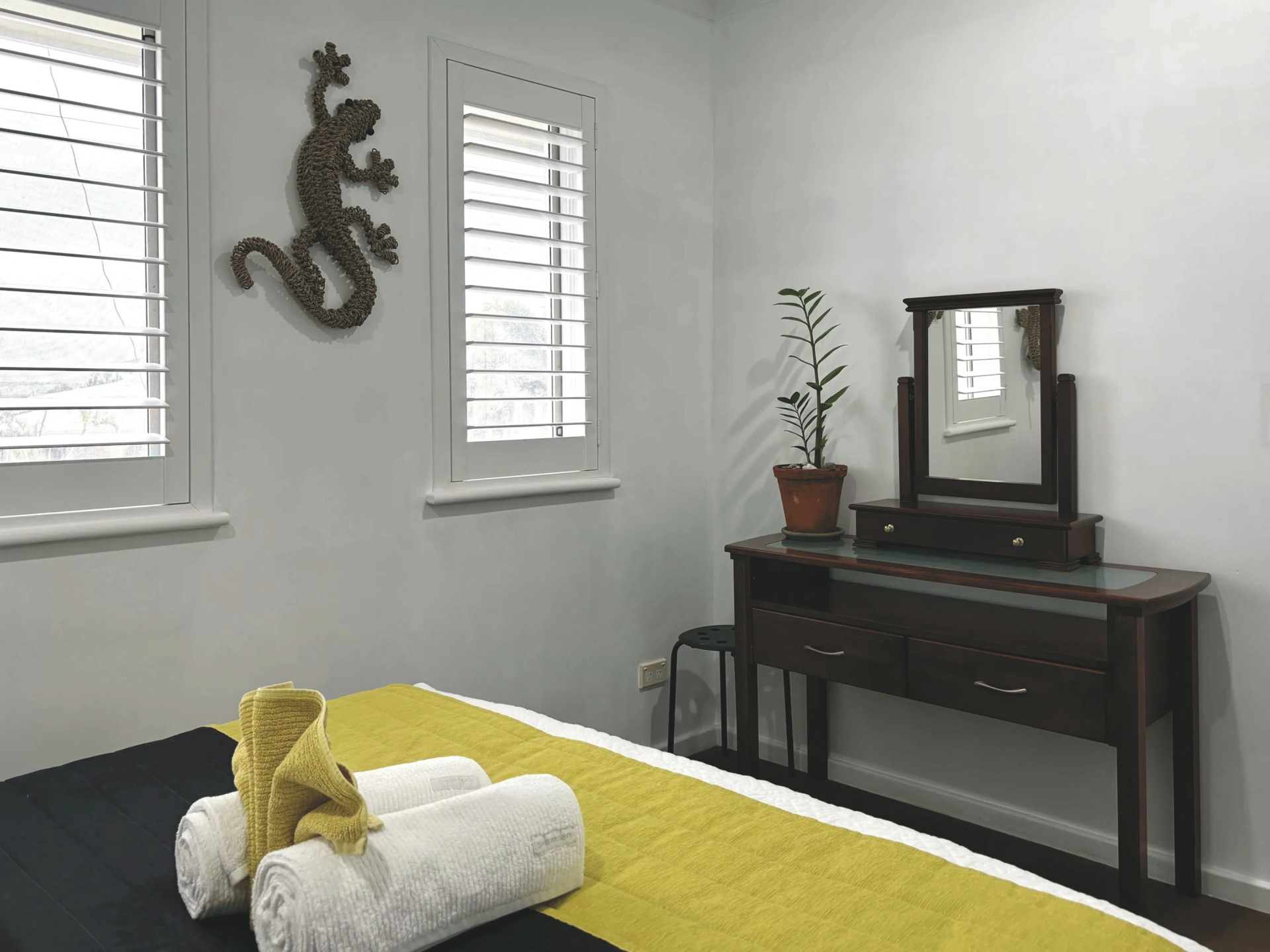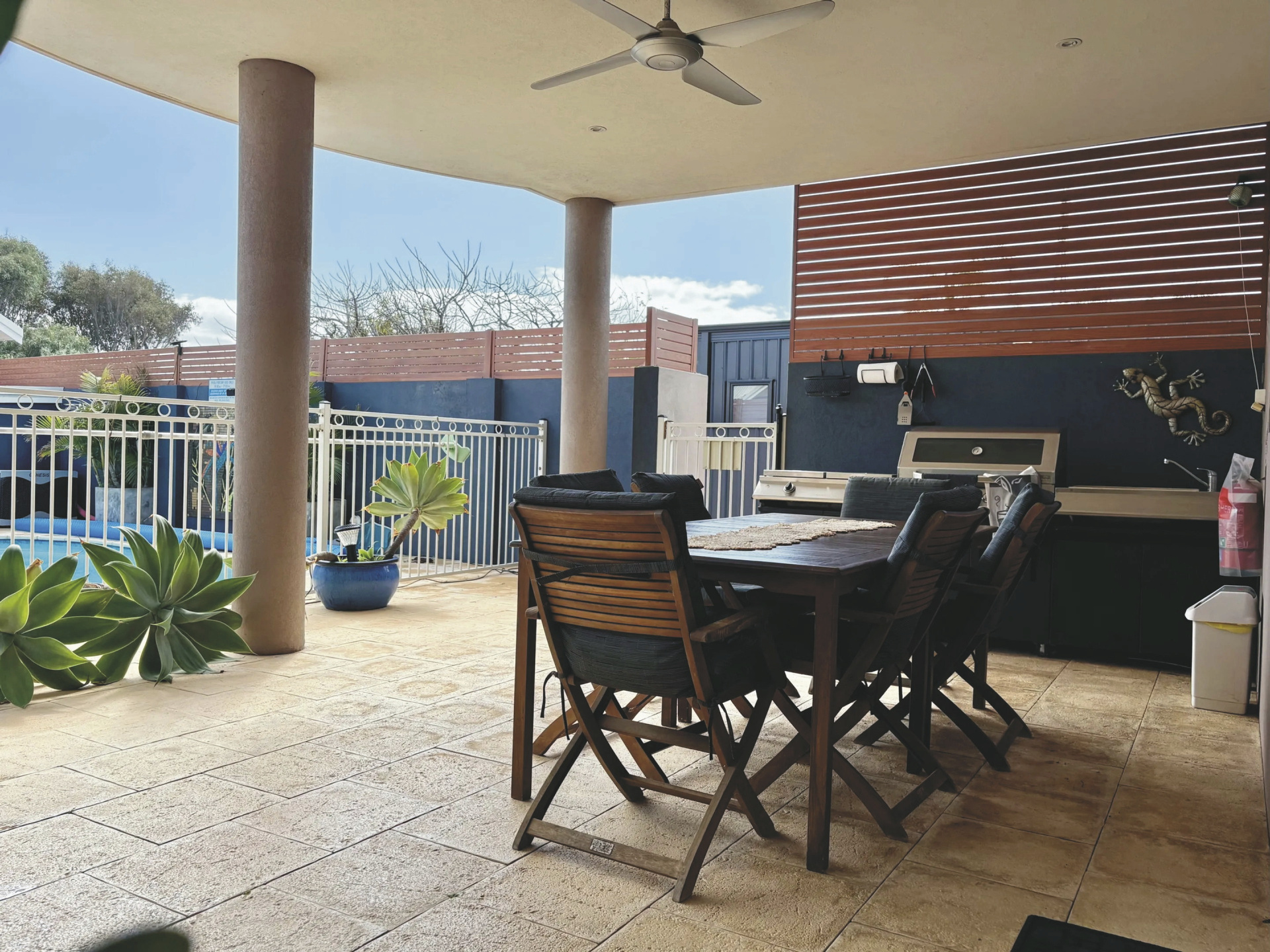 Die Boutique-Unterkunft präsentiert sich in einer modernen Atmosphäre. Die Gestaltung des Hauses ist von indonesischen und asiatischen Kulturen inspiriert, wobei Geckos als Glückssymbole gelten. Für Erfrischung und Entspannung sorgt ein kleiner Pool mit Sonnenliegen. Allen Gästen stehen weiterhin ein BBQ und eine Küche mit Essbereich zur Verfügung. WLAN ist kostenfrei.