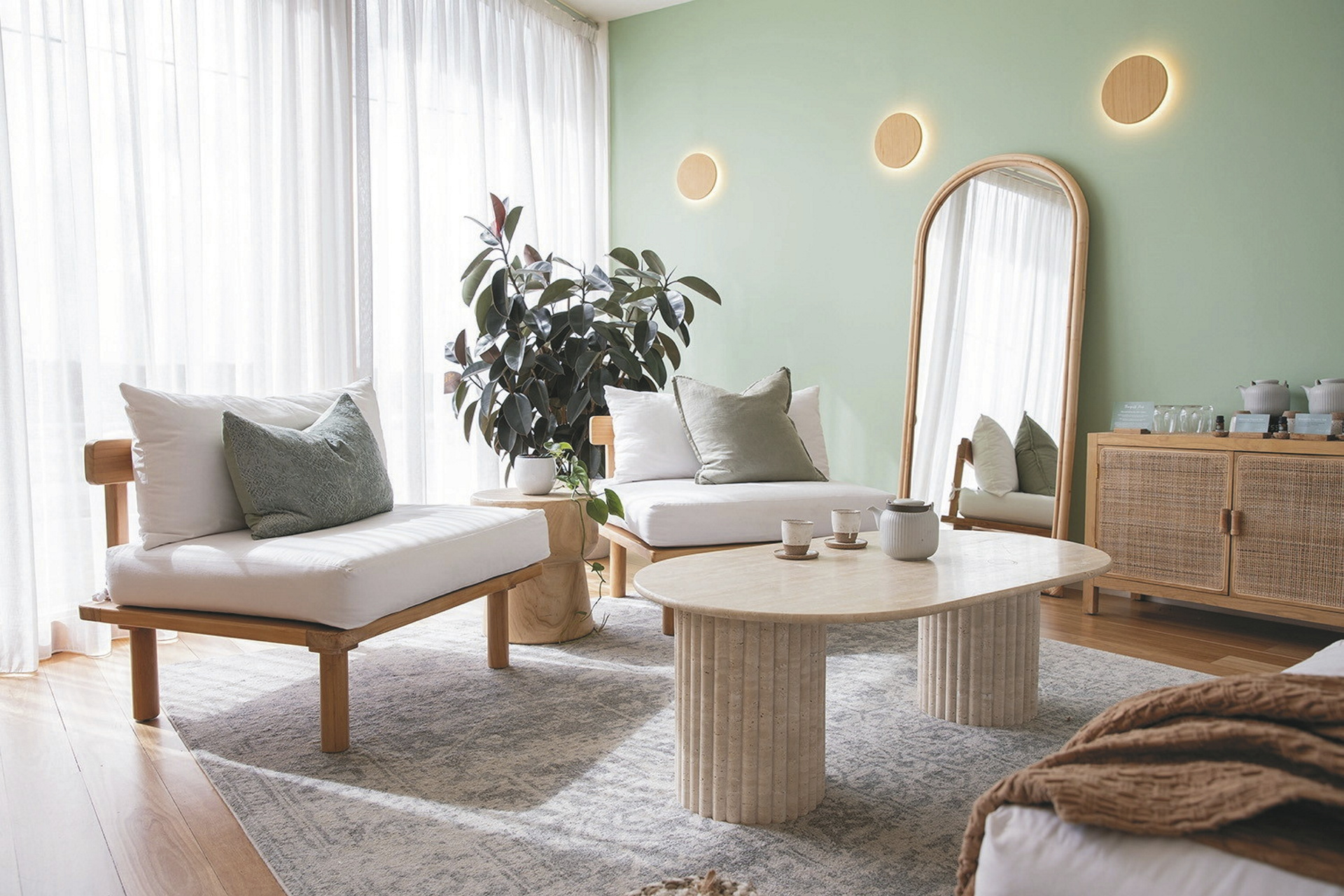 Insgesamt 40 elegante und zeitgemäß eingerichtete Unterkünfte. Darunter Studio-Suiten (25 m²), 1-Schlafzimmer-Suiten (40 m²) und Deluxe Waterfront Apartments (120 m²) mit Schlafzimmern. Alle komfortabel ausgestattet u.a. mit Klimaanlage, Bad/WC, Fön, TV und Tee-/Kaffeezubereiter. Während die Suiten über eine Kitchenette, Esstisch und teilweise Balkon oder Terrasse verfügen, bieten die geräumigen Deluxe Apartments eine voll ausgestattete Küche, Waschmaschine/Trockner und einen großen privaten Balkon mit Blick auf den Anglesea River.
