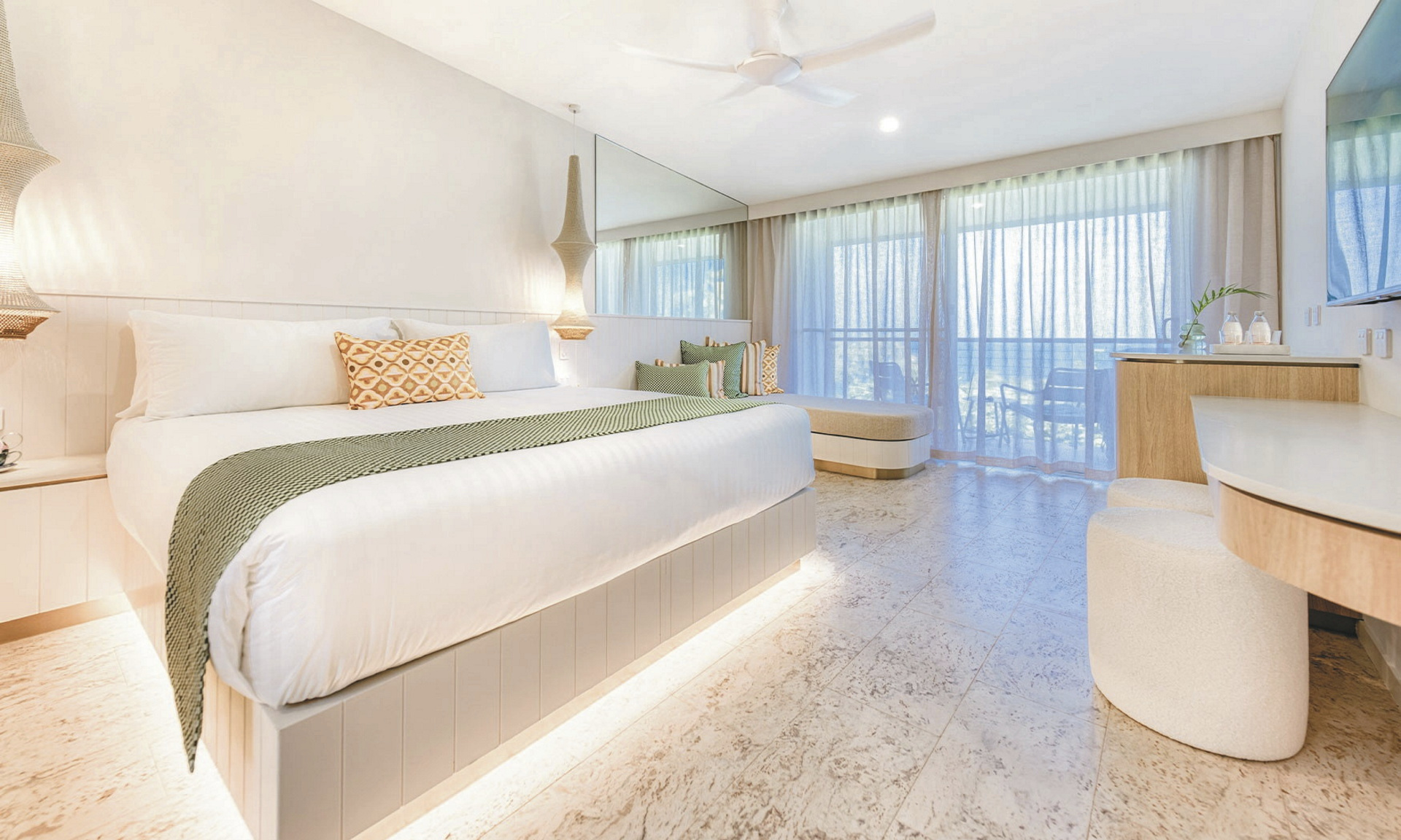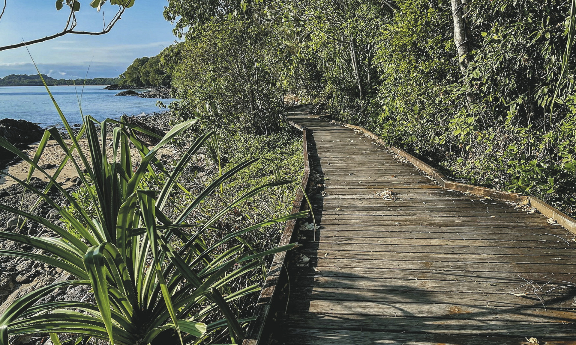 Architektur und Gestaltung des Resorts setzen auf natürliche Materialien und offene, helle Räume, die die tropische Umgebung einbeziehen. Gästen stehen ein tropischer Pool und ein Pooldeck mit Sitz- und Liegebereichen zur Verfügung, ideal zum Entspannen mit Aussicht. Kulinarisch bietet das offene Restaurant auf dem Pooldeck regionale Küche mit frischen Meeresfrüchten und lokalen Produkten. Das Restaurant hat täglich für Frühstück, Mittag- und Abendessen geöffnet. Die Bar serviert Cocktails, Kaffee und Snacks in ungezwungener Atmosphäre. Im hauseigenen Day Spa können Sie sich bei Massagen und Schönheitsbehandlungen entspannen, im gut ausgestatteten Fitnessstudio ihr Training fortsetzen und gleichzeitig die malerische Umgebung genießen. Reizvoll auch der Kennedy Walking Track, der sich über vier Kilometer von South Mission bis zur Kennedy Bay erstreckt und dabei Strand- und Waldwanderungen mit atemberaubende Ausblicken kombiniert. Darüber hinaus bietet das Resort auch eine Boutique.