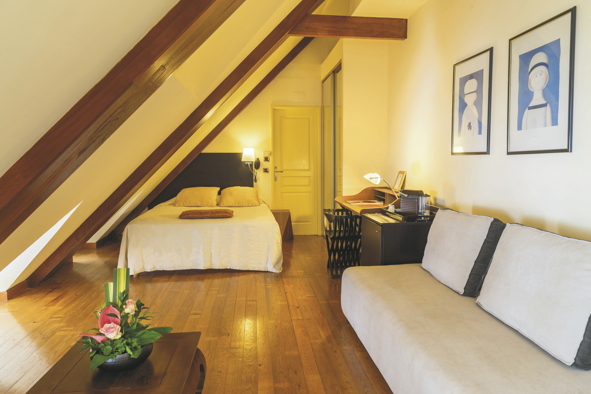 Insgesamt umfasst das Hotel 43 liebevoll dekorierte Zimmer und Suiten, die auf zwei Gebäude verteilt sind. 15 Zimmer, die auf die Gartenseite gerichtet sind, haben einen Balkon oder eine Terrasse. Alle Zimmer verfügen über Badezimmer mit Dusche oder Wanne, Toilettenartikel und Fön, TV, Telefon, WLAN und Safe. Die noch großzügiger geschnittenen Suiten, teilweise mit Sofa-Doppelbett.