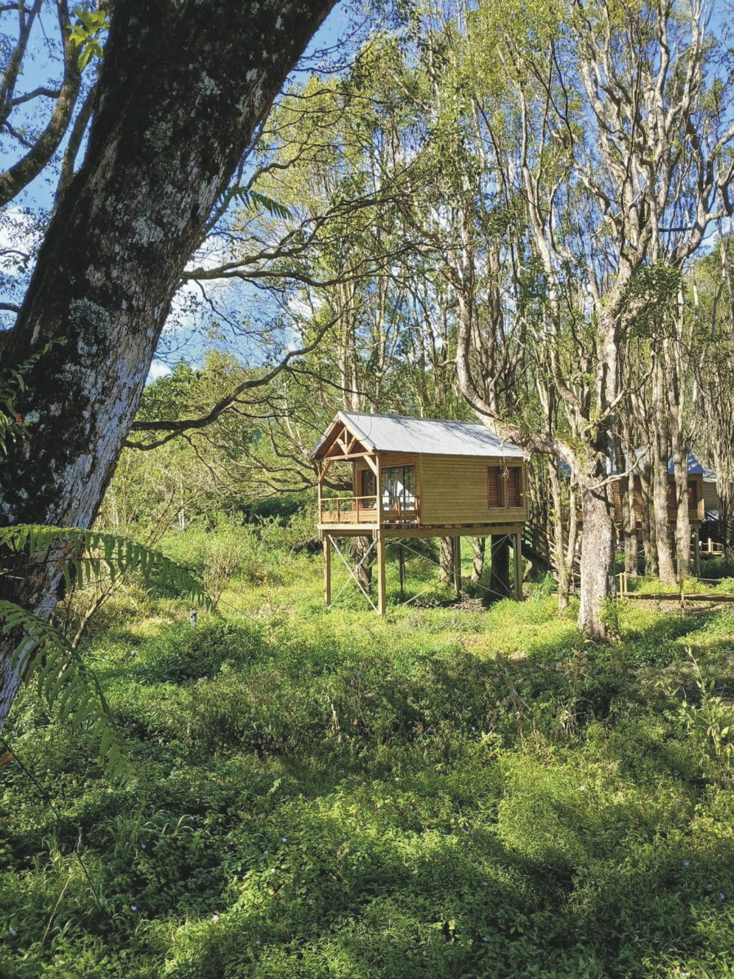 5 voll ausgestattete Baumhäuser, eingebettet inmitten eines zauberhaften Waldes mit einem atemberaubenden Blick. Jede Hütte trägt den Namen eines Baumes, der für eine Region auf La Réunion symbolisch ist. 3 Standard-Hütten (26 m²) und 2 Superior-Hütten ( 36 m²) verfügen über 1 Kingsize-Bett und 1 bzw. 2 (Superior) Einzelbett(en) 190 x 90 cm im Zwischengeschoss, Badezimmer mit ebenerdiger Dusche und separatem WC sowie möblierte Außenterrasse. Alle Gebäude sind über Pontons und Stege (1 m hoch) zugänglich.