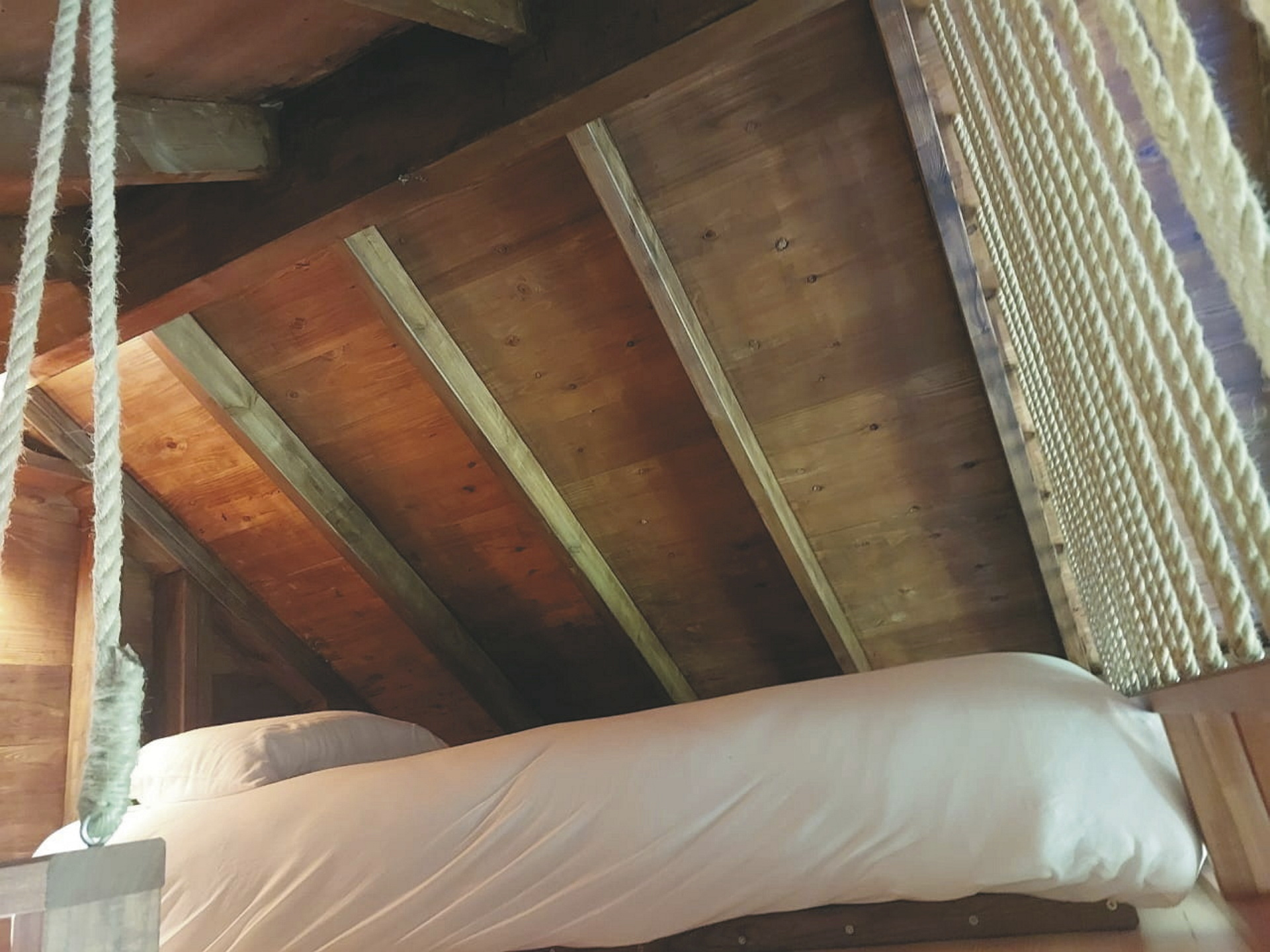 Die zusätzlichen Betten befinden sich im Zwischengeschoss und sind über eine Leiter zu erreichen. Daher empfehlen wir die Hütten nicht für Kinder unter 5 Jahren.Der Zugang zur Sauna und zum Whirlpool ist in der Übernachtung inbegriffen und umfasst 30 Minuten im Whirlpool und 30 Minuten in der Sauna (gemeinsam genutzt). Er muss im Voraus gebucht werden (je nach Verfügbarkeit). Der Wellnessbereich ist nur für Kinder ab 12 Jahren zugänglich.