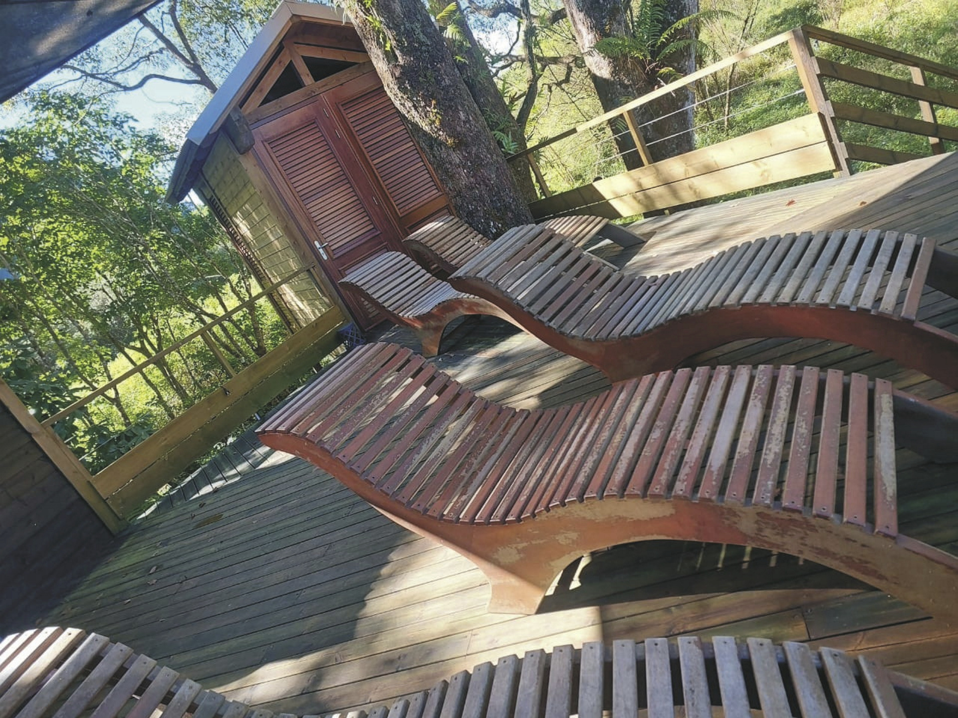Dieser einzigartige Ort ist eine Oase der Ruhe, in der Sie abschalten und in der majestätischen und geschützten Umgebung des Nationalparks einen kompletten Tapetenwechsel erleben können. Umgeben von endemischen Pflanzen und wunderschönen Landschaften bietet die Kanopea Forest Lodge in einer freundlichen Atmosphäre einen unvergesslichen Aufenthalt. Tanken Sie neue Energie in diesem abgeschiedenen Kokon in 5 exklusiven Hütten inmitten des Blätterdachs. Im Herzen des Waldes befindet sich das Restaurant mit Bar. In dieser gemütlichen und intimen Atmosphäre kreiert der Küchenchef Joey Atchama ein einzigartiges kulinarisches Erlebnis. Der Wellnessbereich, bestehend aus einer großen Terrasse mit Blick auf die umliegende Landschaft und 5 Sonnenliegen, einer Massagekabine, einer Sauna (max. 5 Personen) und einem Whirlpool (max. 2 Personen). Kostenloser bewachter Parkplatz (1 Fahrzeug pro Hütte).