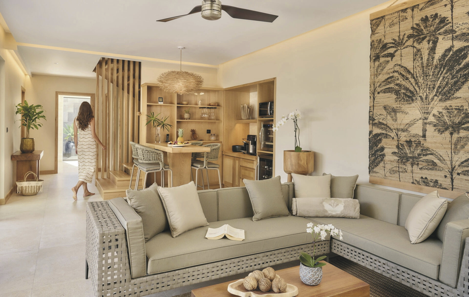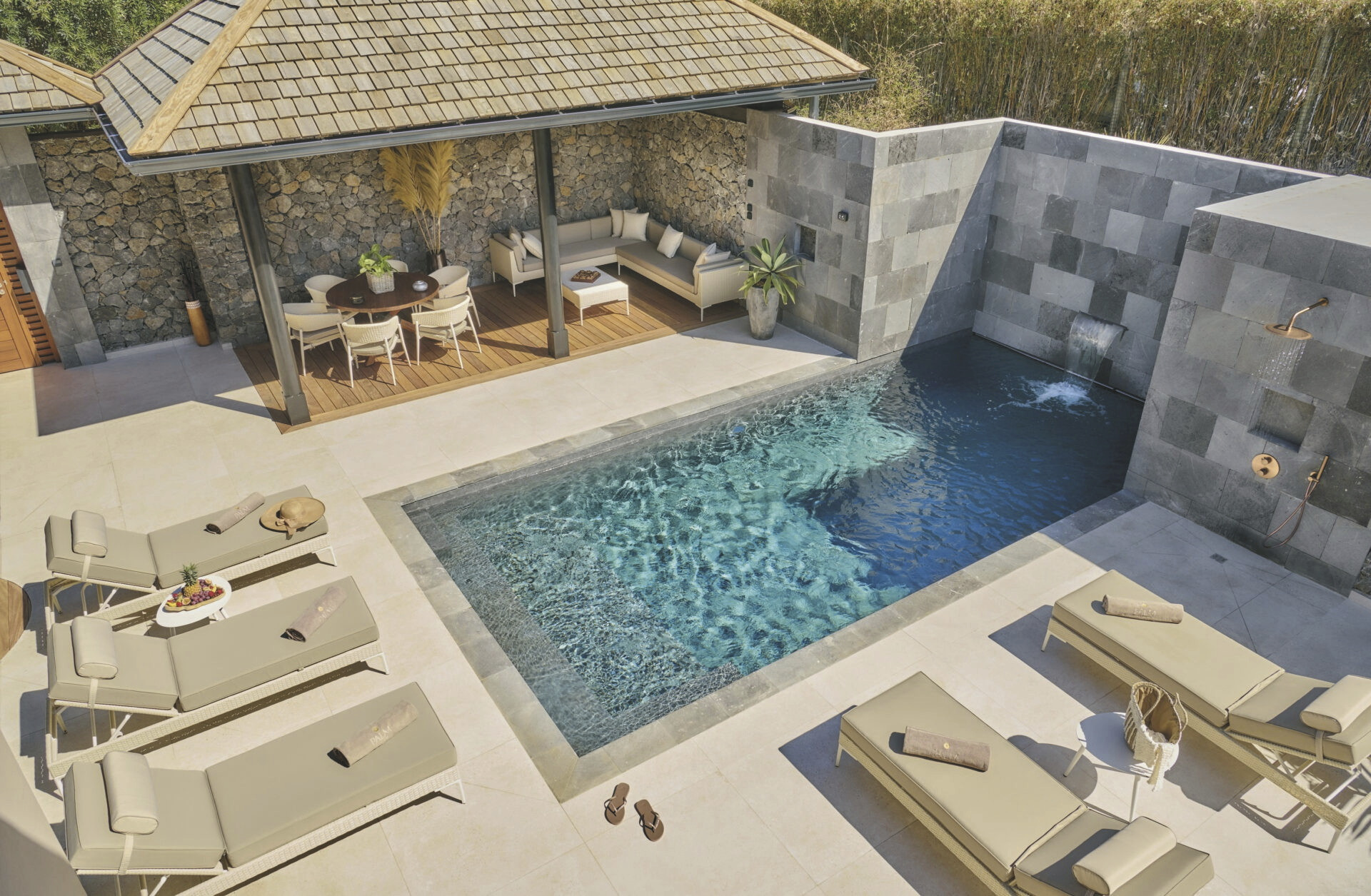 6 Villen mit je 8 Zimmern, 32 Superior-Zimmer (34 qm), 16 Deluxe (41 qm), 14 Suiten (55 qm), 3 Lodges (100 qm) und 5 Pool Lodges (140 qm). Alle ausgestattet mit eigenem Bad, Terrasse oder Balkon, Klimaanlage, TV, Telefon, kostenlosem WLAN/Internetzugang, Safe, Nespresso-Maschine und Minibar. Suiten zusätzlich mit Sonnendeck, Whirlpool und Außendusche auf der Terrasse. Während die Superior-, Deluxe-Zimmer und die Suiten in hübschen kreolischen Villen in der schönen Gartenanlage verteilt sind, thronen die Lodges mit Meerblick über dem Indischen Ozean am Rand einer Klippe. Die Pool Lodges (Gartenblick) liegen inmitten üppiger Natur und verfügen über einen privaten beheizten Pool, separaten Wohnraum und Außenwohnbereich.