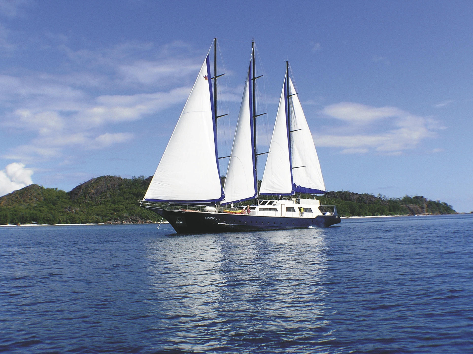 Begeben Sie sich auf eine einzigartige Reise an Bord eines Segelschiffes. Eine wundervolle Gelegenheit dem Alltagsstress zu entfliehen und die traumhafte Inselwelt der Seychellen vom Boot aus zu erkunden. Beide Yachten sind ideal für die Erkundung exklusiver und schwer zugänglicher Plätze, kleiner Granitinseln und wunderschöner, versteckt gelegener Buchten. Persönlicher Service wird auf diesen schönen Schiffen mit Klimaanlage großgeschrieben.