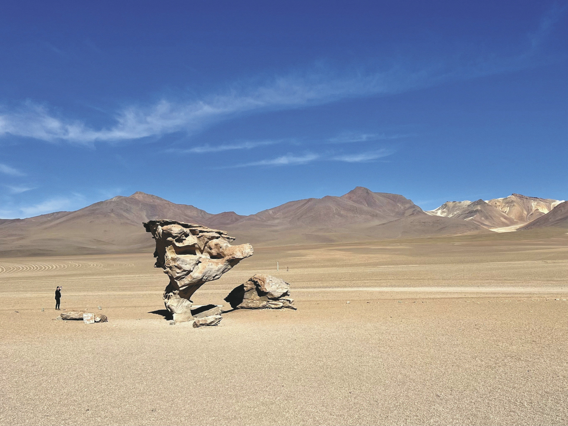 Siloli Wüste – San Pedro de Atacama (F/M).Ein berauschendes Kaleidoskop an Farben und Sinneseindrücken erwartet Sie. Von Wind geformte Steinformationen, die rot schimmernde Laguna Colorada mit ihren unzähligen Flamingos, zischende Wasserdampfsäulen und blubbernde Erdlöcher, die Thermalquellen von Polques, wo Sie in herrlicher Umgebung ein Bad nehmen können und die Laguna Verde, eine türkis schimmernde Lagune am Fuß des majestätischen Vulkans Licancabur. An der Grenzstation Hito Cajon werden Sie erwartet und zu Ihrem Hotel in San Pedro de Atacama gefahren.