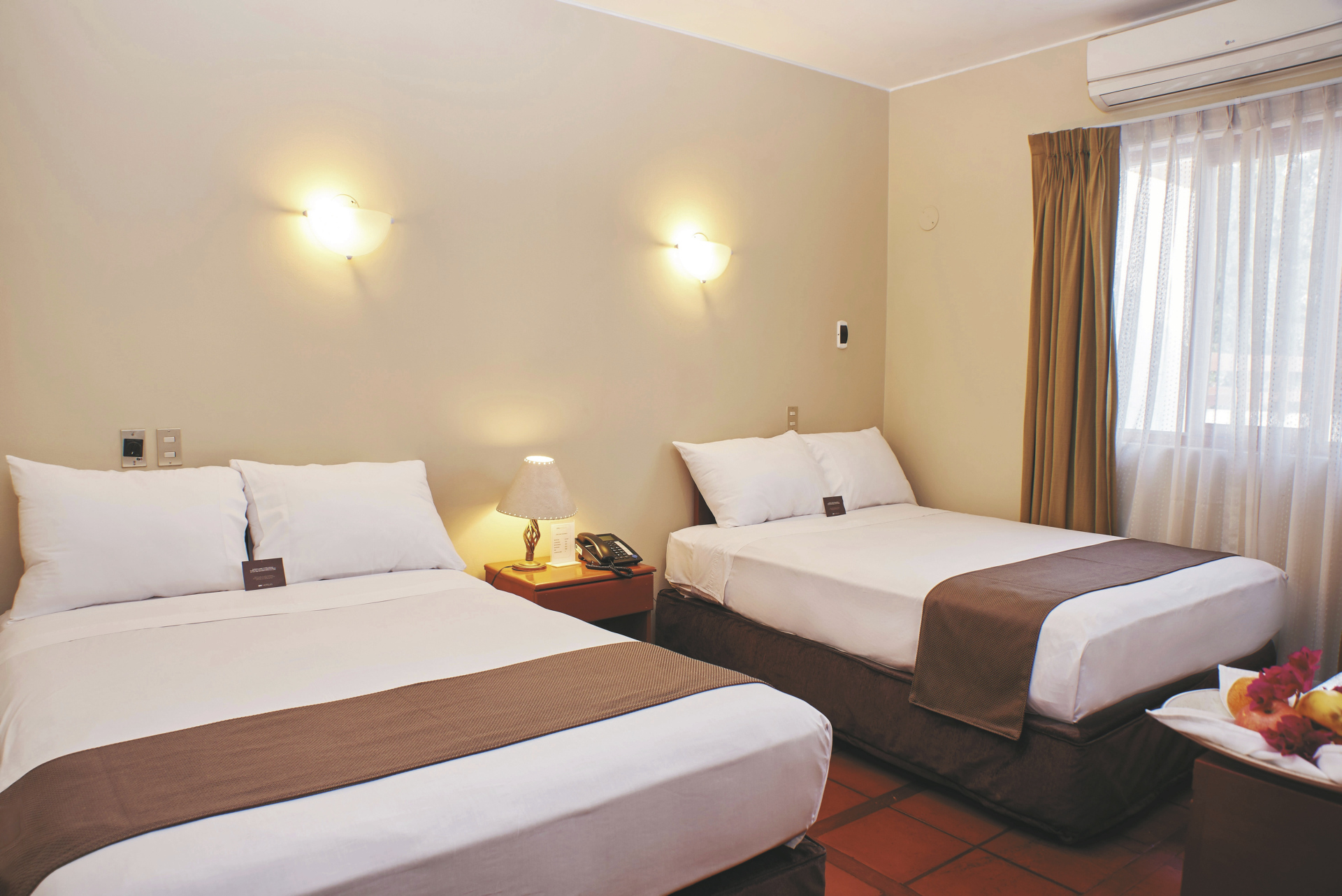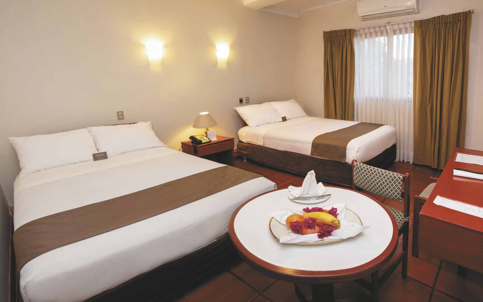 Das Herzstück des im Stil einer Hacienda erbauten Hotels, ist ein großer offener Innenbereich mit Garten und einer Poolanlage. Ein Restaurant, eine Bar und ein Planetarium runden das Angebot ab.