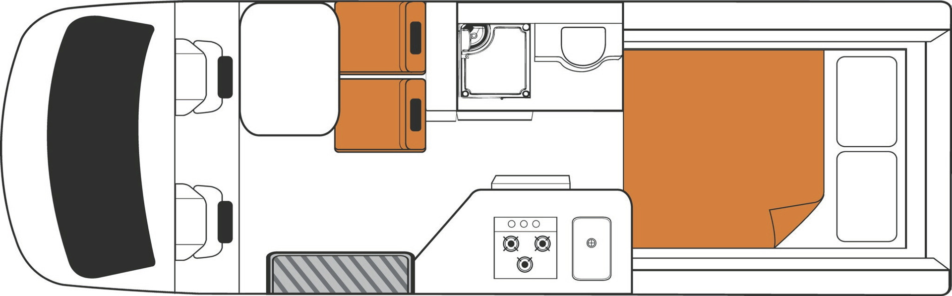 • 2 Sitzplätze in der Fahrerkabine (zum Wohnbereich drehbar)