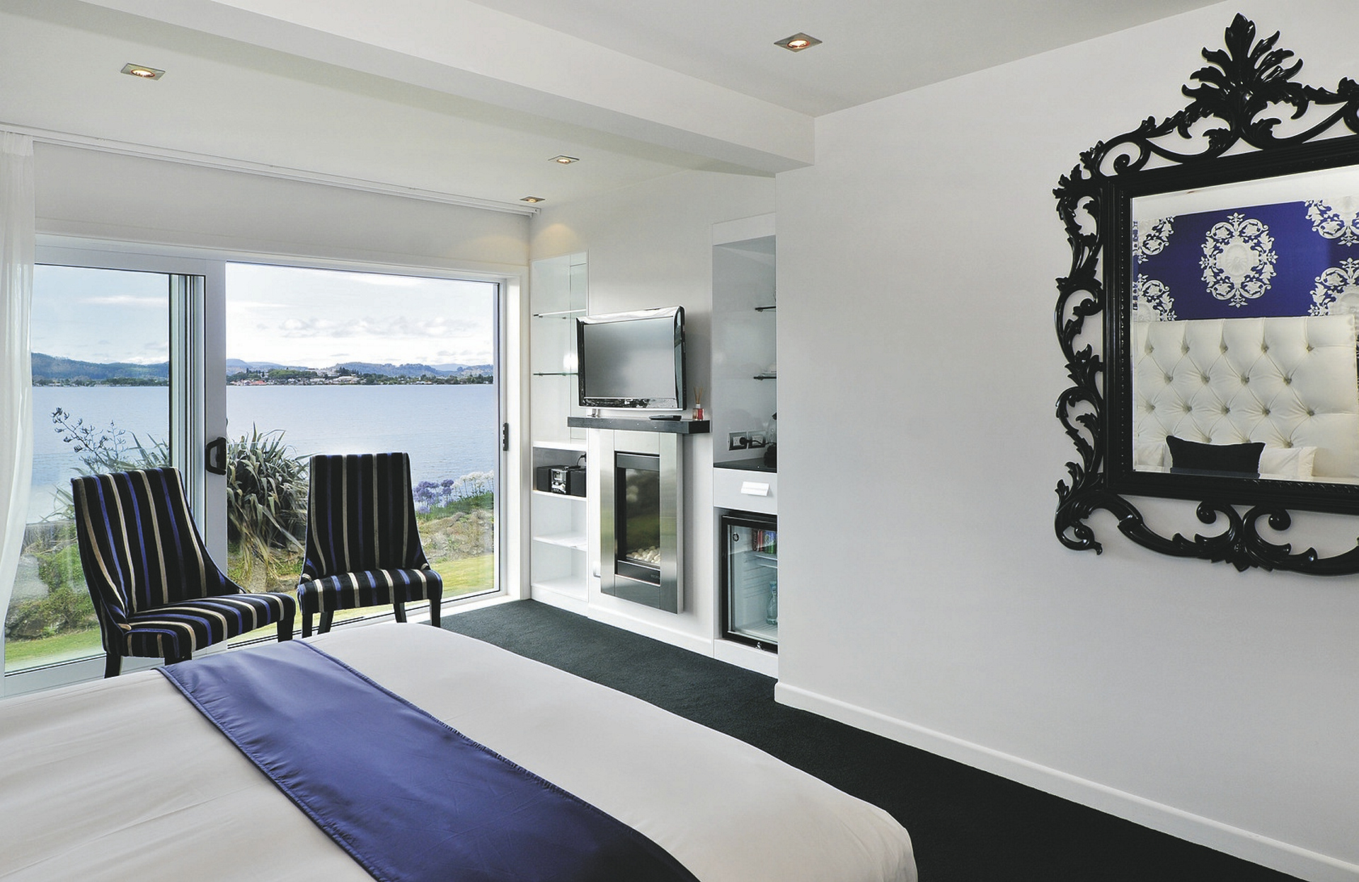 Das Hotel bietet eine anspruchsvolle, luxuriöse Unterkunft direkt am Ufer des Lake Rotorua mit einer Kulisse, die ihresgleichen sucht. Die ruhige Umgebung wird Sie augenblicklich ummanteln und in ein Gefühl der Wohligkeit und Entspannung versetzen, gleichsam einem Schwan der in der Abenddämmerung sanft über das stille Wasser gleitet.