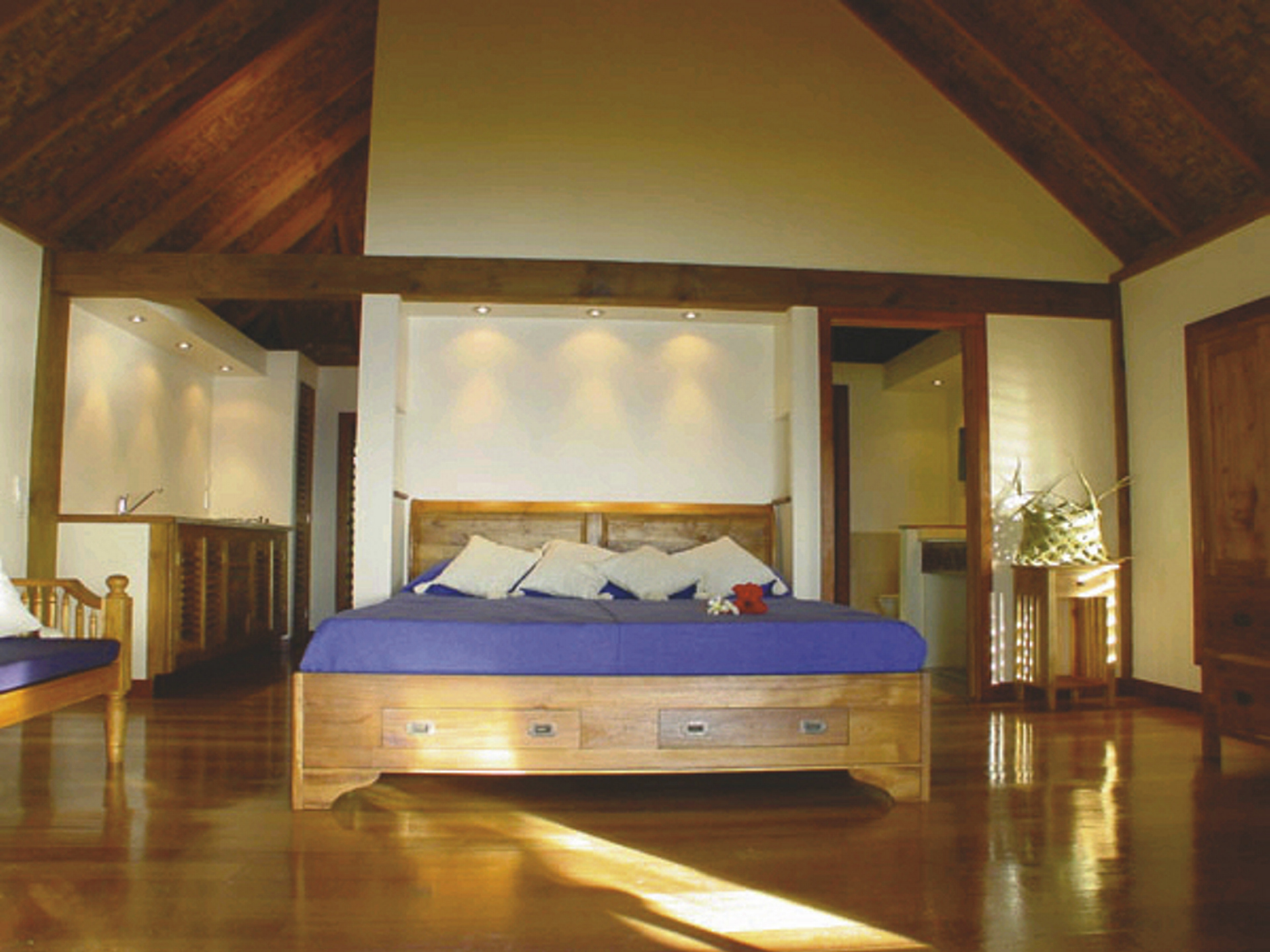 Die 8 Bungalows unterscheiden sich durch ihre Lage und sind geschmackvoll im modernen, polynesischen Stil gestaltet. Ausgestattet sind sie mit Küchenzeile, kleinem Privatgarten mit Außendusche, Moskitonetzen, Klimaanlage, Ventilator, Radio, Telefon, WLAN, Safe, Fön, Kühlschrank und Tee-/Kaffeezubereiter.