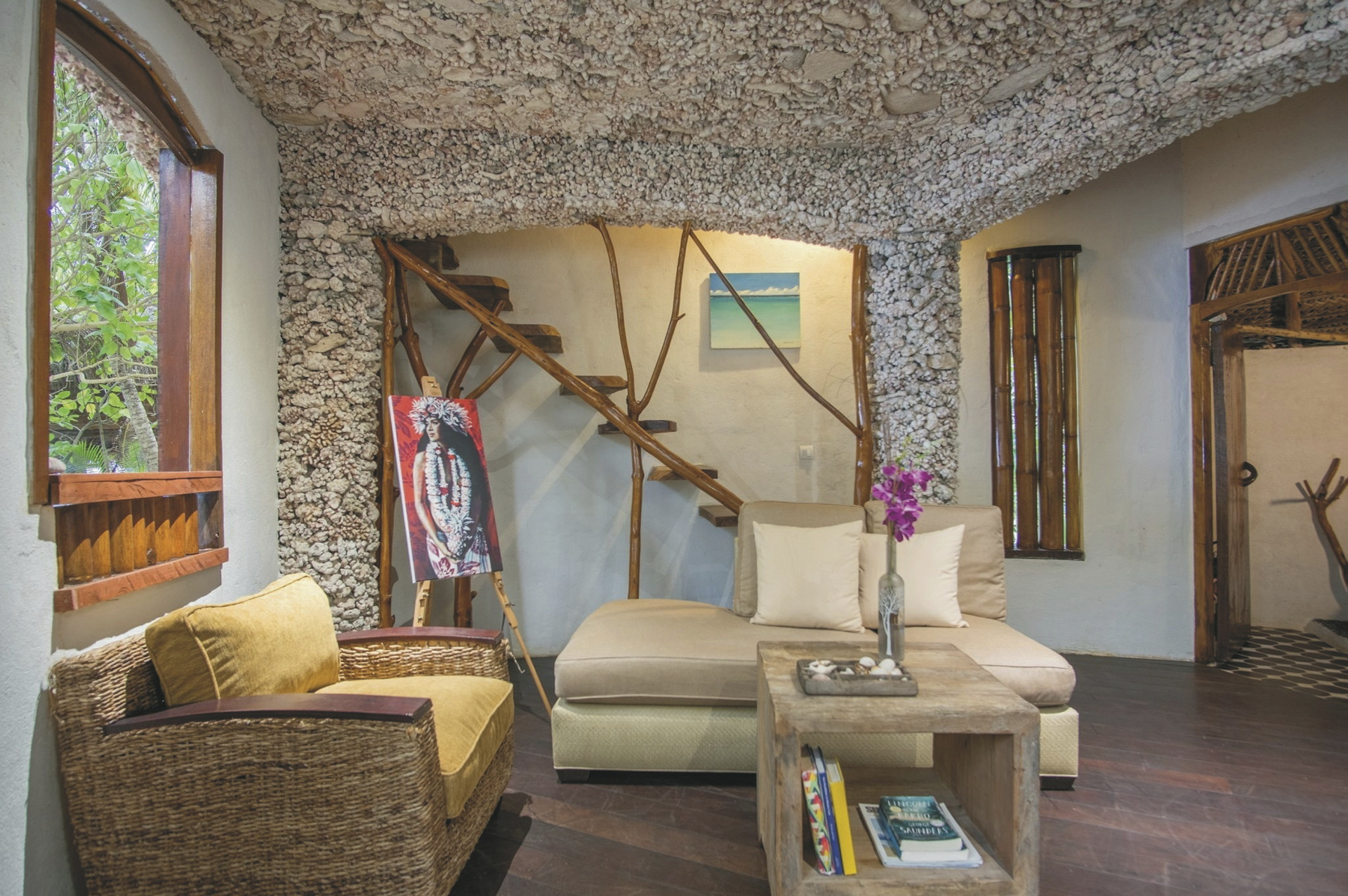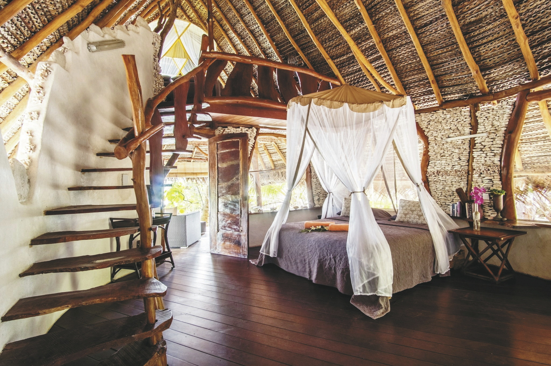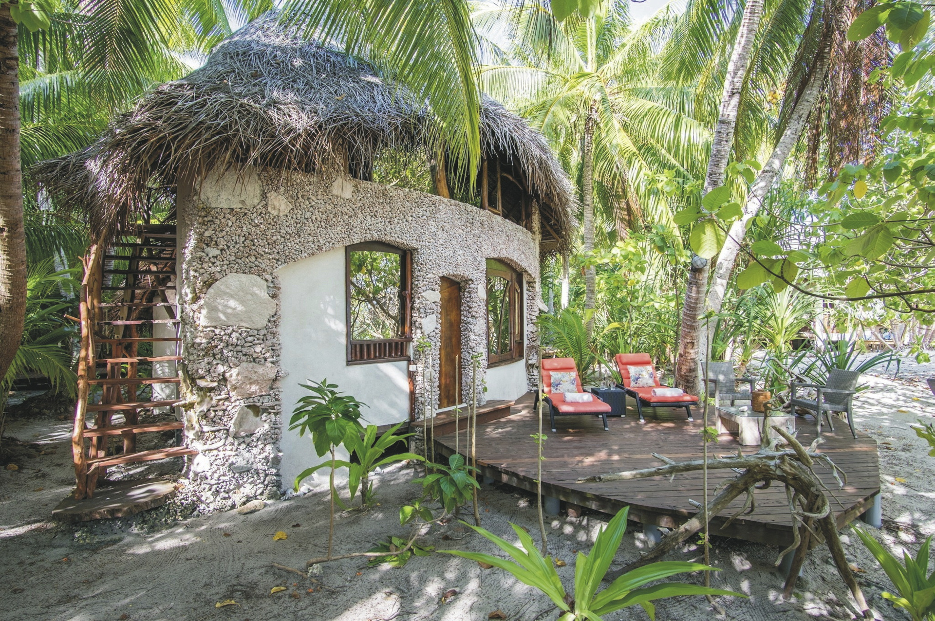 8 Bungalows im Garten oder am Meer aus natürlichen Materialien wie Korallen und Palmwedeln, ausgestattet mit Ventilator, MP3-Dock, Moskitonetz. Seit 2018 zusätzlich: 1 Strandbungalow mit Klimaanlage und Jacuzzi.