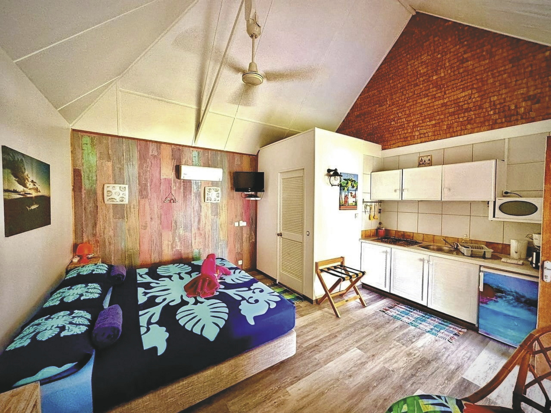 9 Studios und Bungalows aus Holz, alle mit Terrasse, Küche, Ventilator, TV und Safe. Alle ausgeschriebenen Wohneinheiten sind zusätzlich klimatisiert.